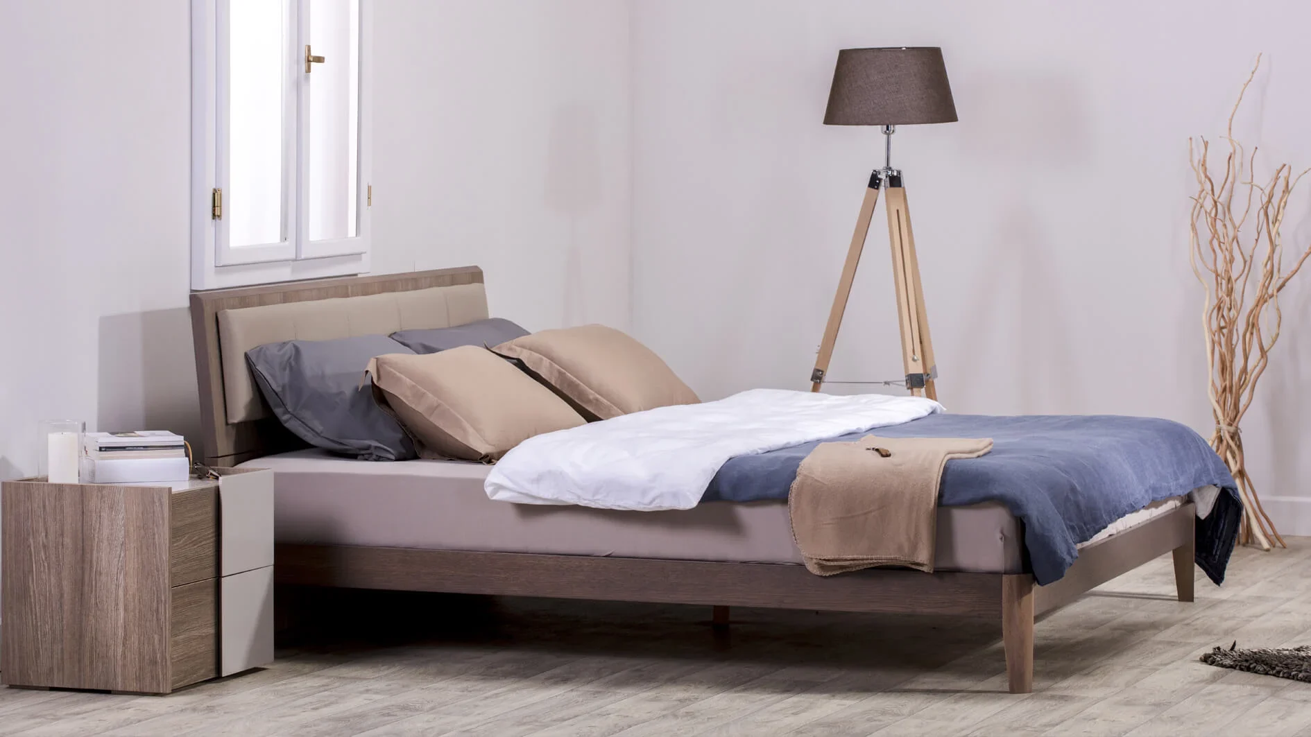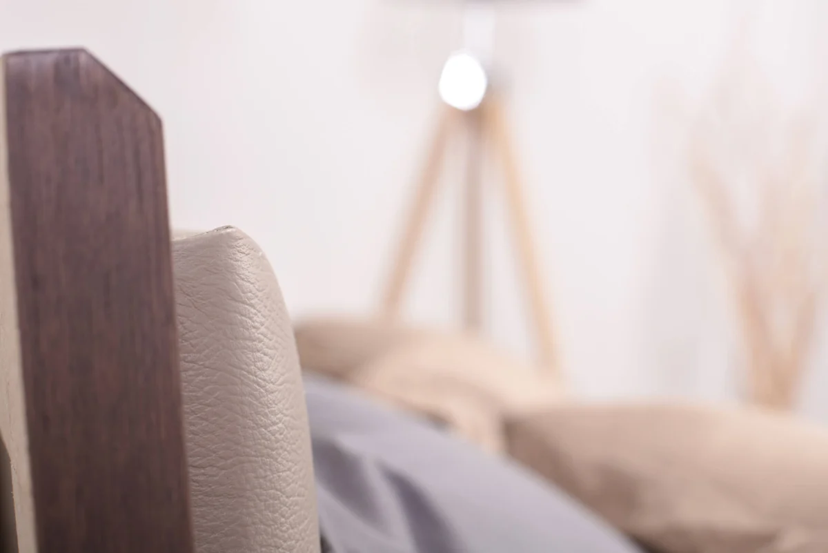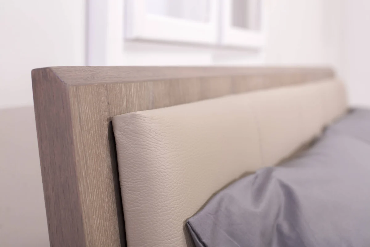 Nice bed allows you to make your bedroom a perfect place to sleep. A headboard with an upholstered leather accessory, in a cappuccino tone, makes this bed special and very comfortable. You can rely on it and enjoy reading or napping.