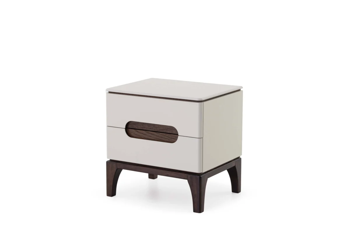 Specially designed for all lovers of retro style with gentle rounded lines, the Alora bedside table has two drawers, which are easily opened without visibly set handles.