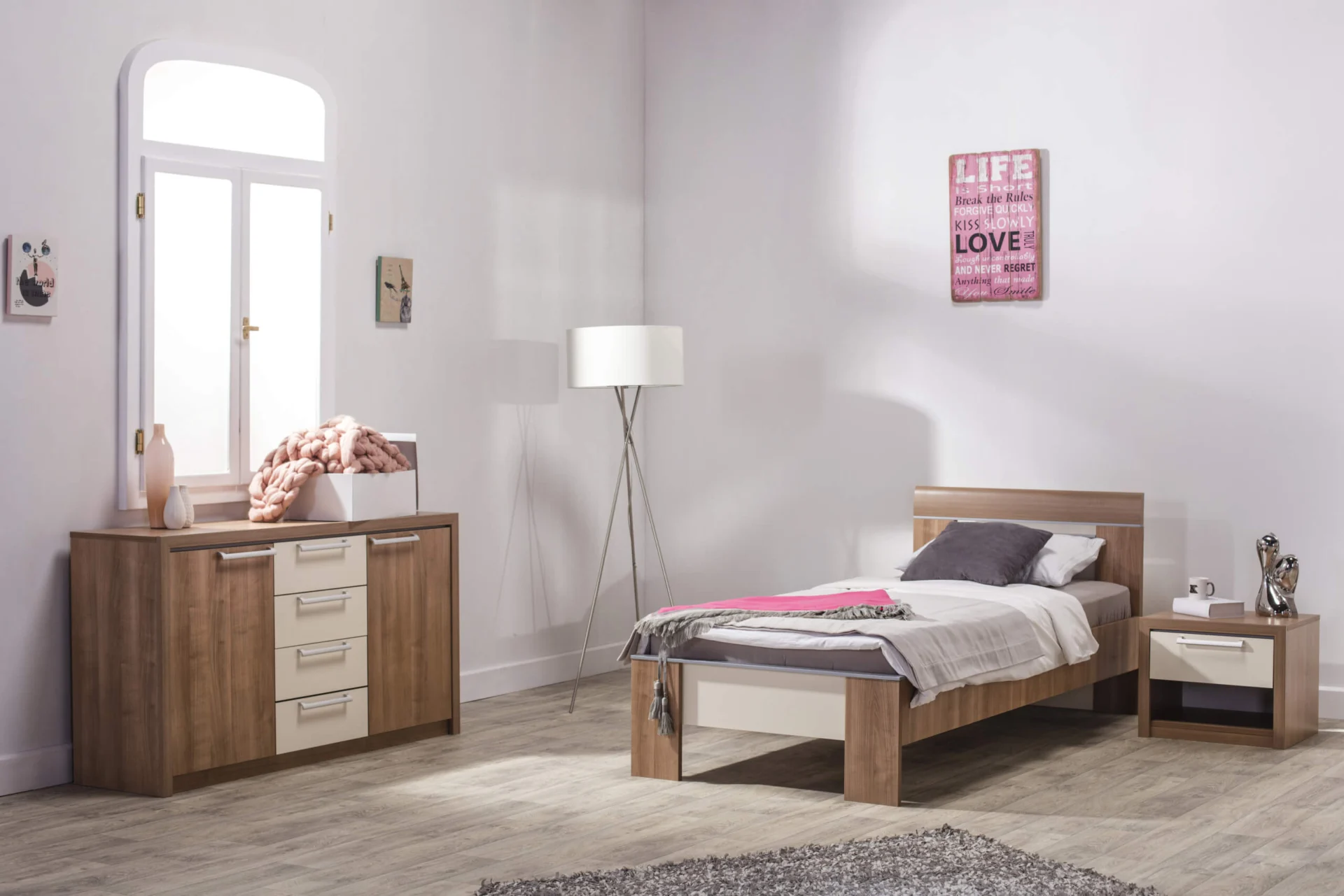 Keln bed is a part of the collection of the same name for fitting out children’s rooms and bedrooms. In order to create the perfect corner for your child to learn and relax, you can complement this bed by choosing a double-wing wardrobe with classic or sliding doors, a desk, dresser, a bedside table and a mirror. Each element is bought individually and it is up to you to make the best combination for your child.