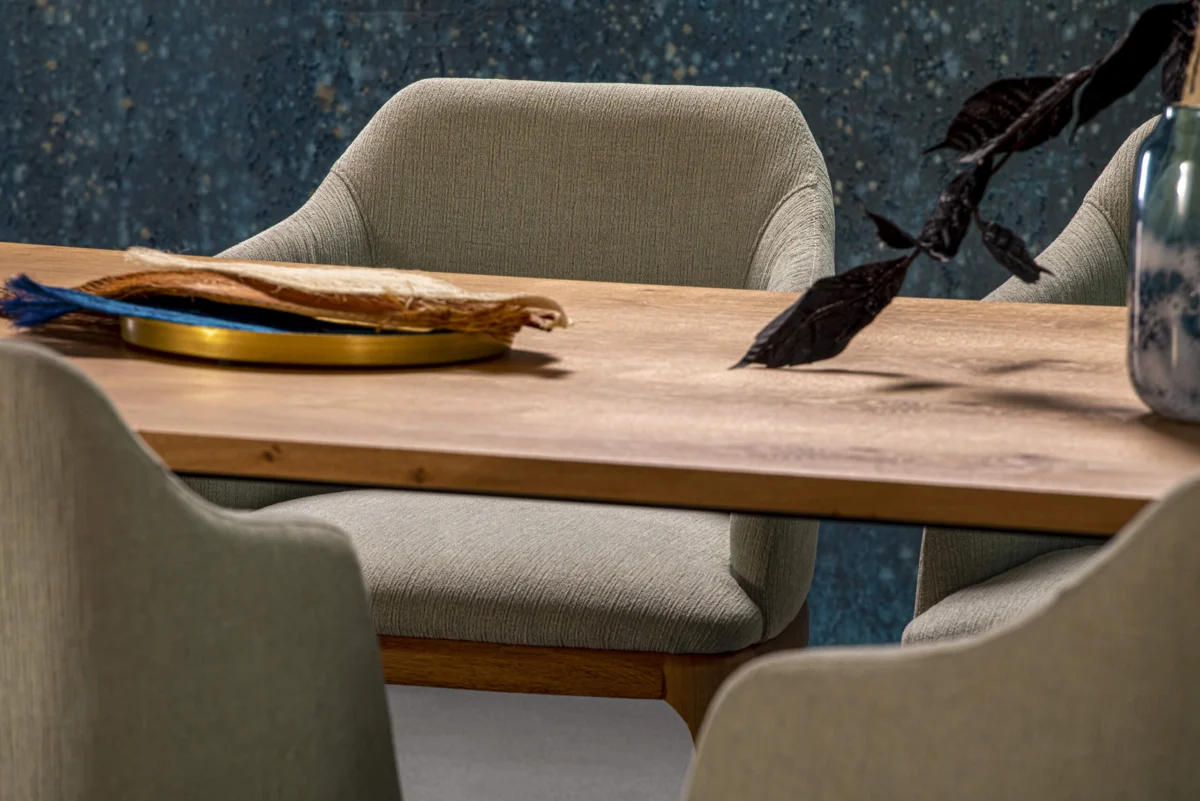 The seating part of this dining chair is spacious enough. With carefully designed armrests, this model takes on the character of an armchair that can be used to decorate a living room or work space. Stefany chair is also used to furnish hotels, restaurants and other interiors.
