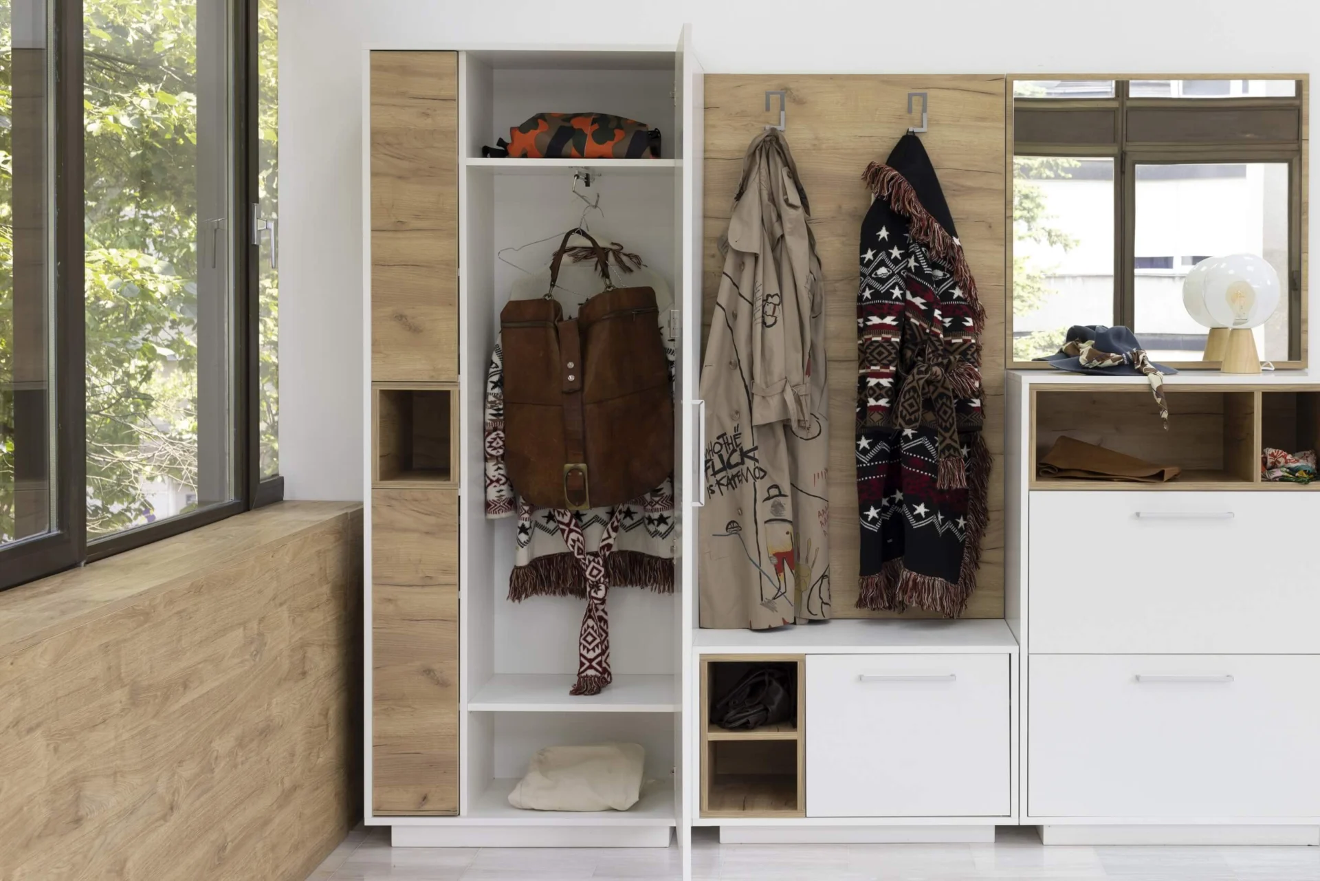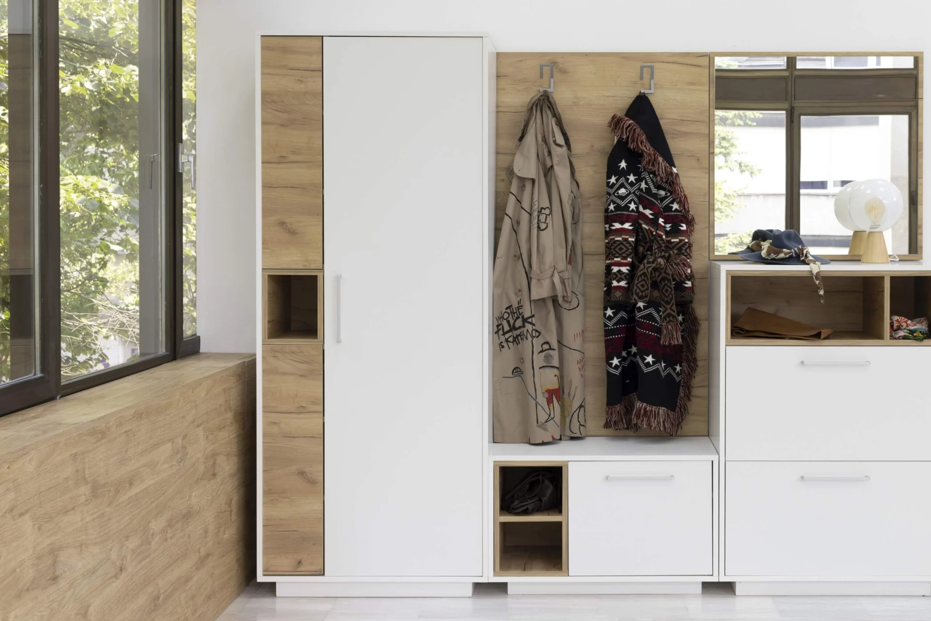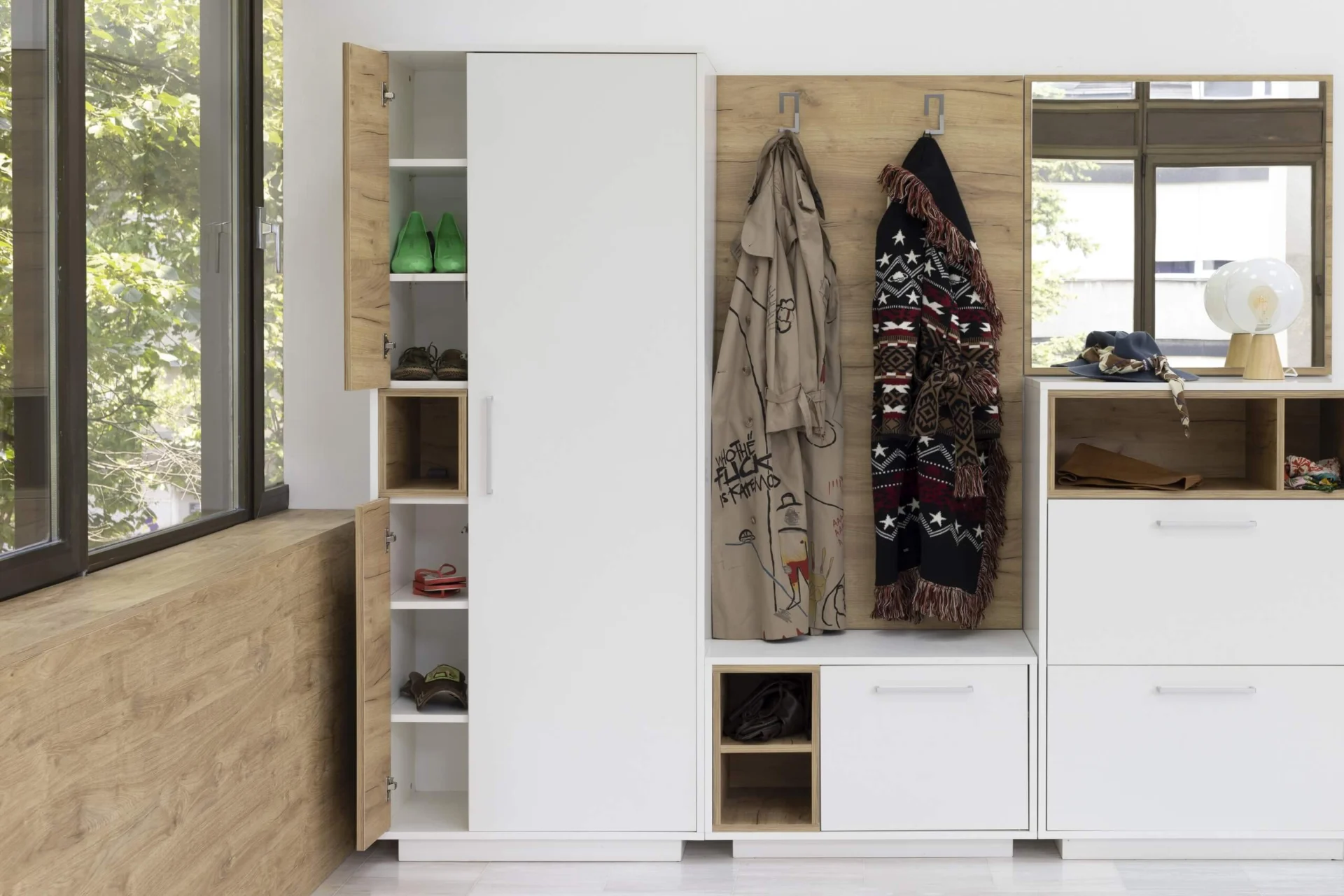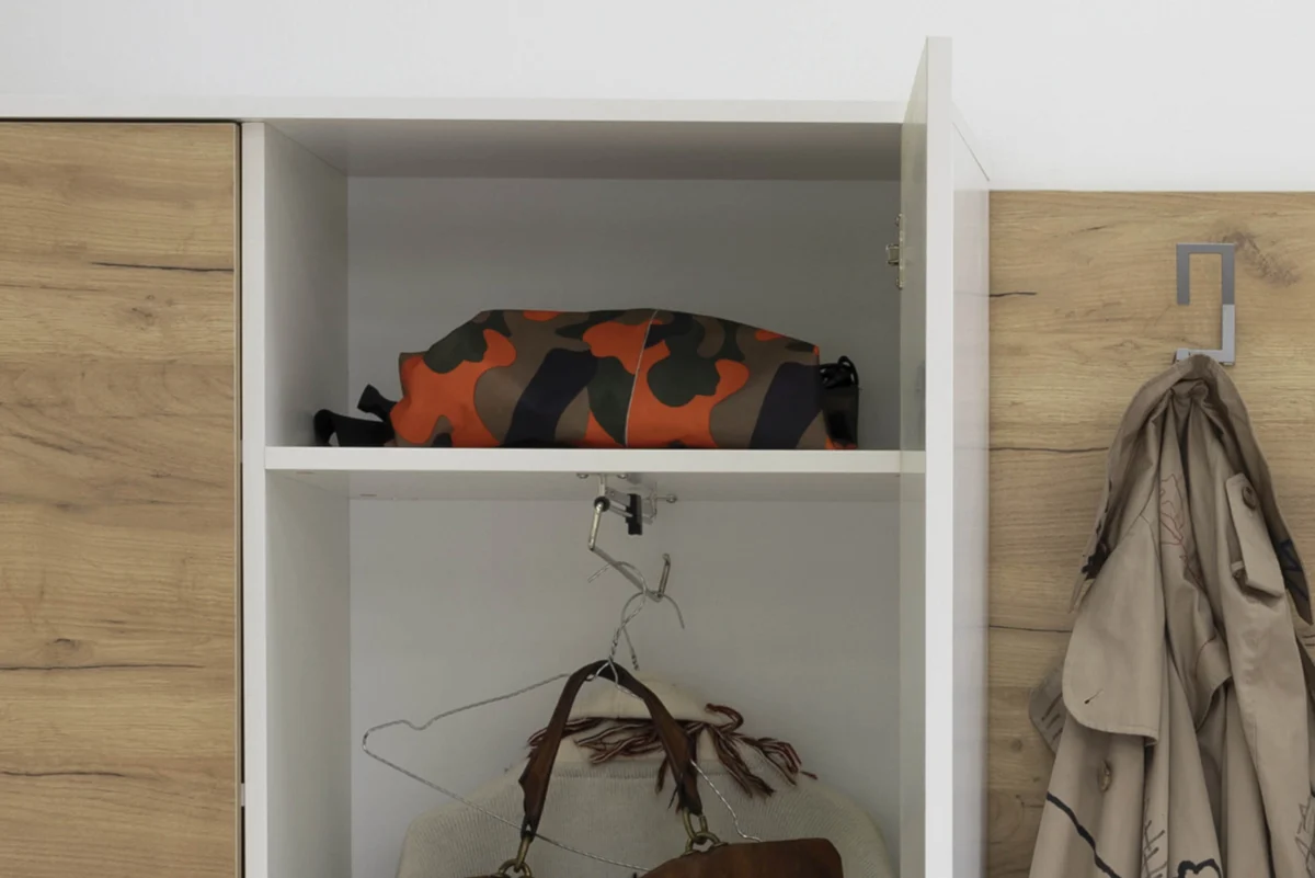 The Luna wardrobe for the anteroom is a functional piece of furniture thanks to which your hallway will always be neat and beautiful. It will serve you to put away clothes, shoes and various other things every day.