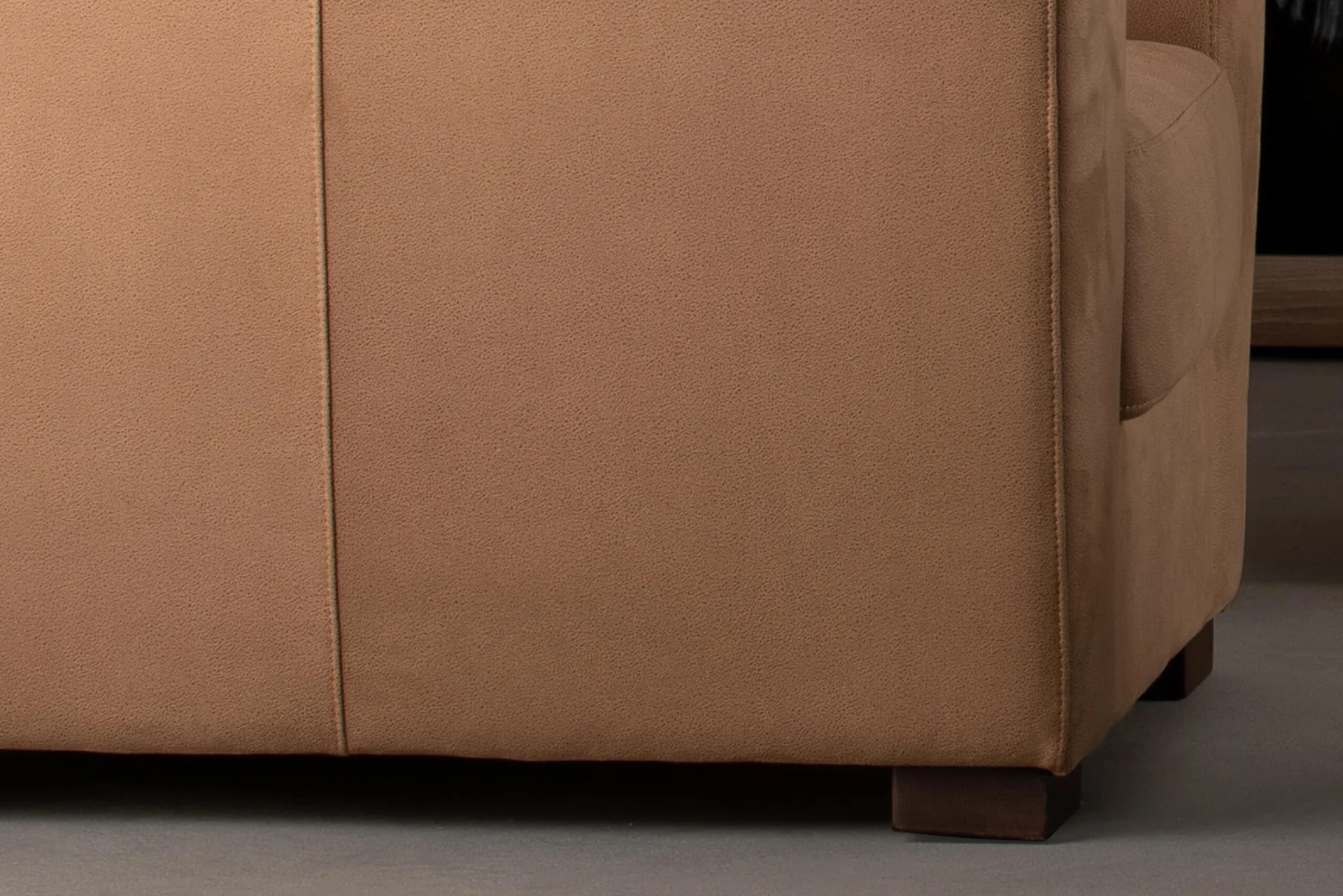 Beech sawn timber, chipboard and hardboard are used to make the interior construction of the armchair. The seat cushion is filled with highly elastic HR foam. Standard polyurethane foams are used for coating other parts. The square legs are made of solid wood.
