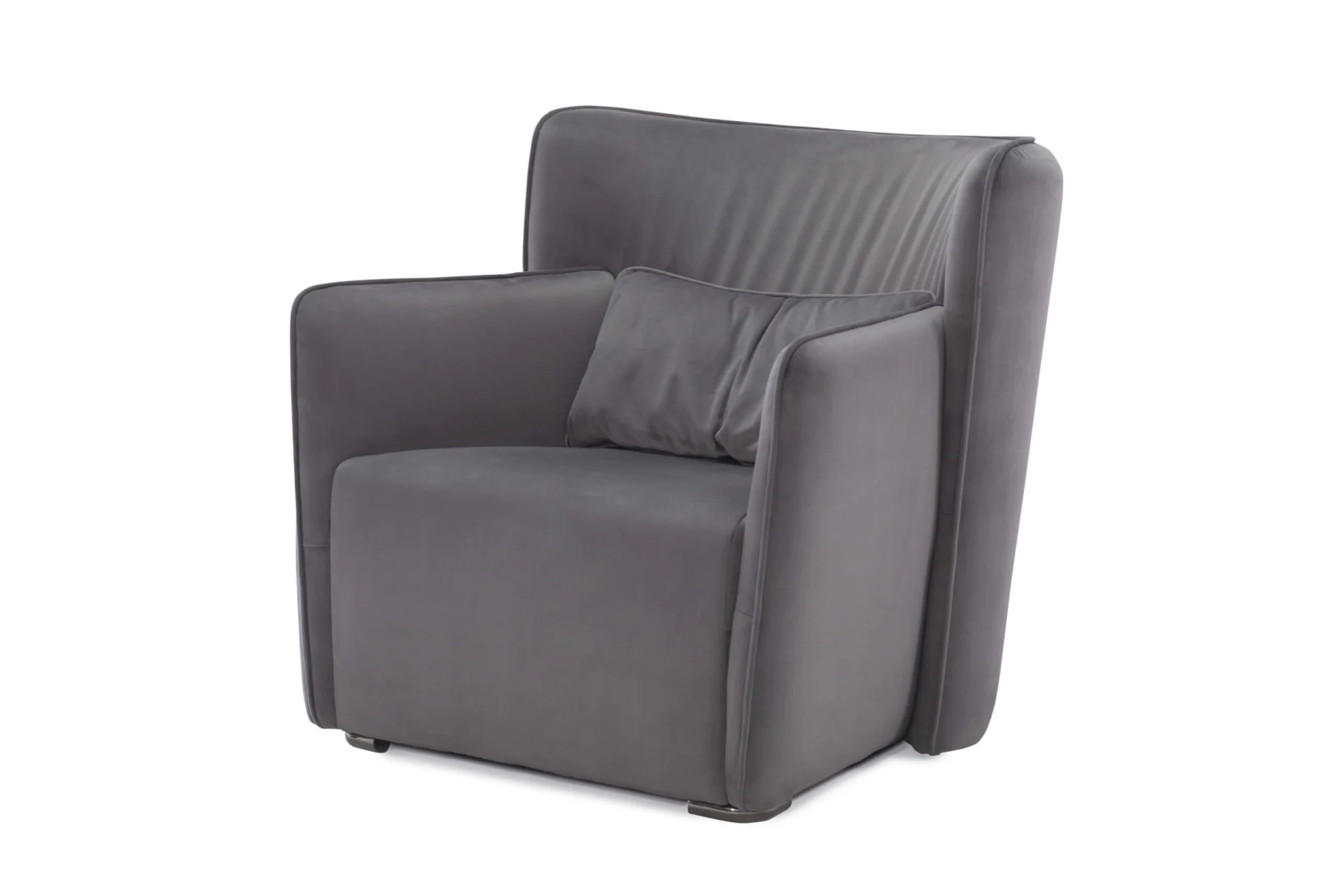 The structure of the Elena armchair is made of beech sawn timber, plywood, MDF, chipboard and hardboard. Standard polyurethane foams and highly elastic HR foam in the seat are used as the filling in the armchair. The decorative pillow is filled with silicone fiber. The use of different foams in the backrest, seat and structure is tailored to the needs of every user’s comfort.