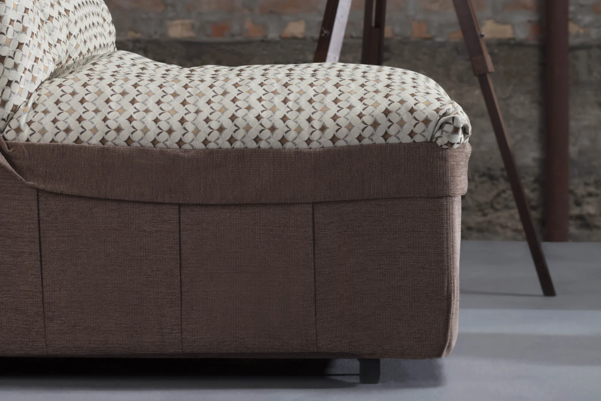 The structure of the armchair is made of beech sawn timber, MDF, chipboard and hardboard. Standard polyurethane foams are used for filling. The armchair has a built-in mechanism that enables its transformation into a bed. The mattress has a wire core and is extremely comfortable.