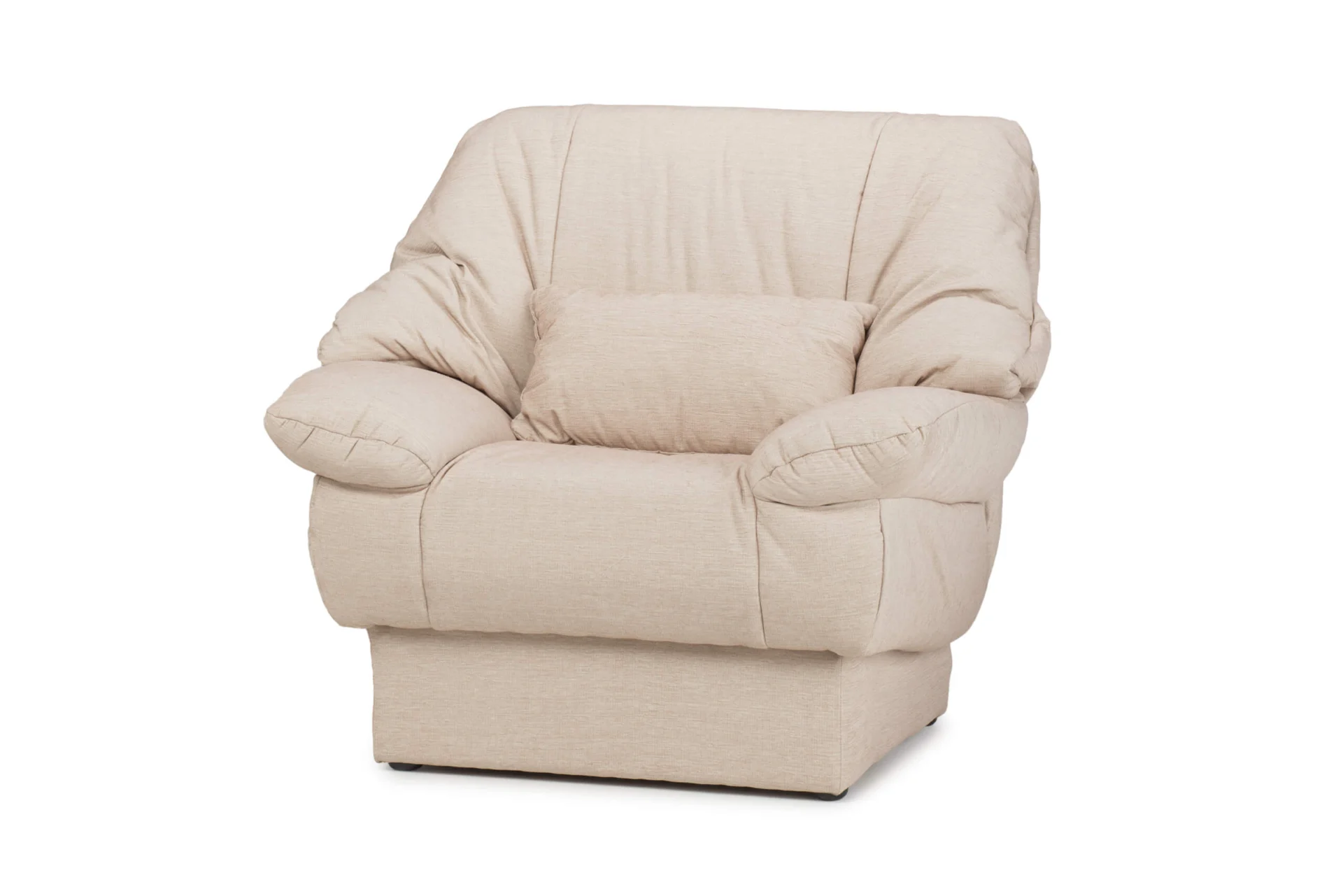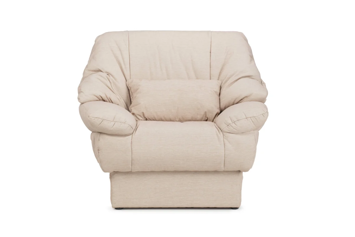 The Nevena armchair coated in soft, puffy upholstery and pillows entices you to sit comfortably in it and rest for a long time. It is designed so that it provides your body with the necessary rest, and the spine is perfectly supported thanks to an additional pillow that you can place behind your back.