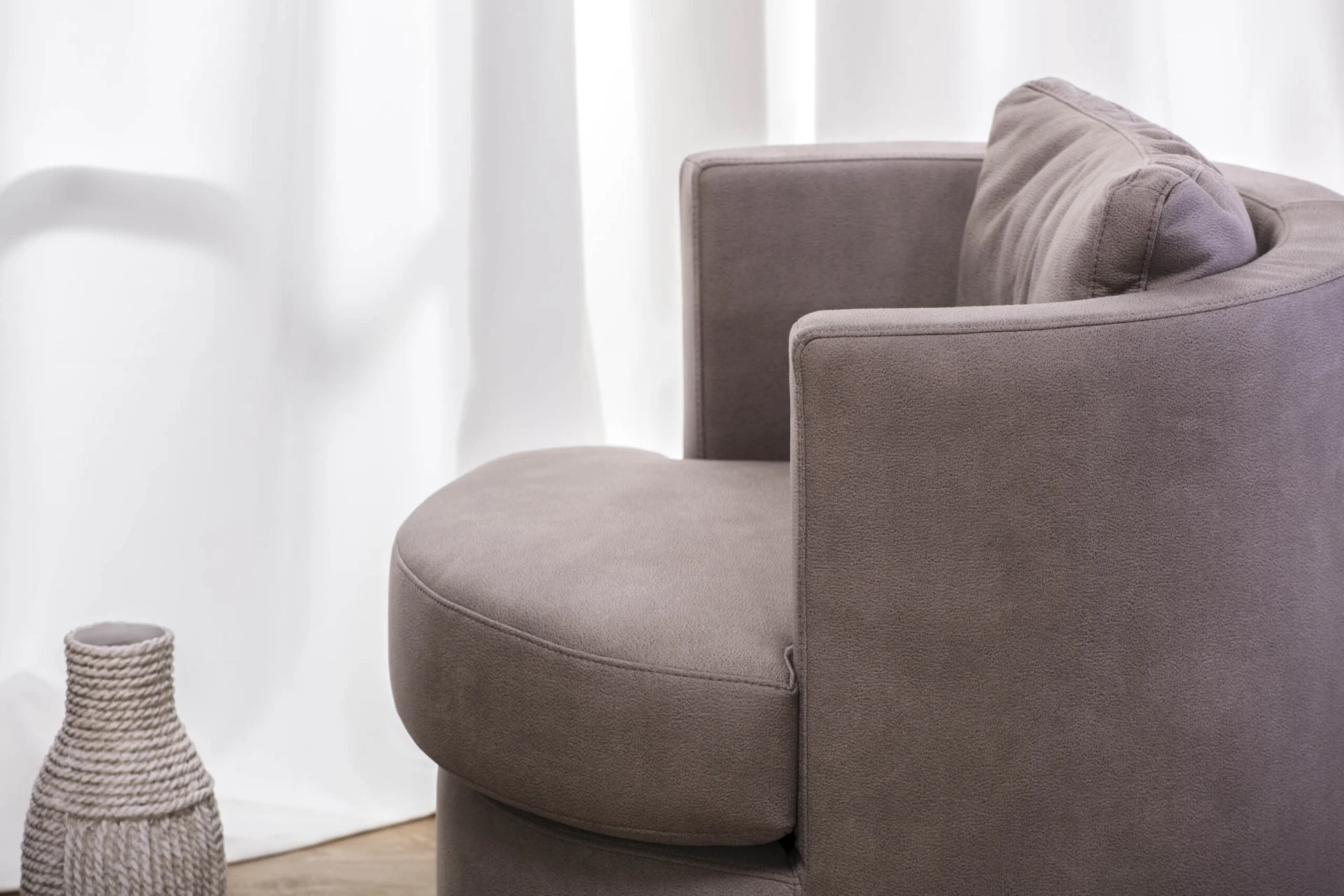 The Sfera armchair is characterized by a solid construction made of beech wood, hardboard and plywood. The structure is covered with soft polyurethane foam. The seat part is a combination of elastic webbing and highly elastic HR foam. The armchair is accompanied by an additional back cushion filled with silicone filler. Comfort is guaranteed with this armchair. It can be covered with fabrc or leather, in the color of your choice.