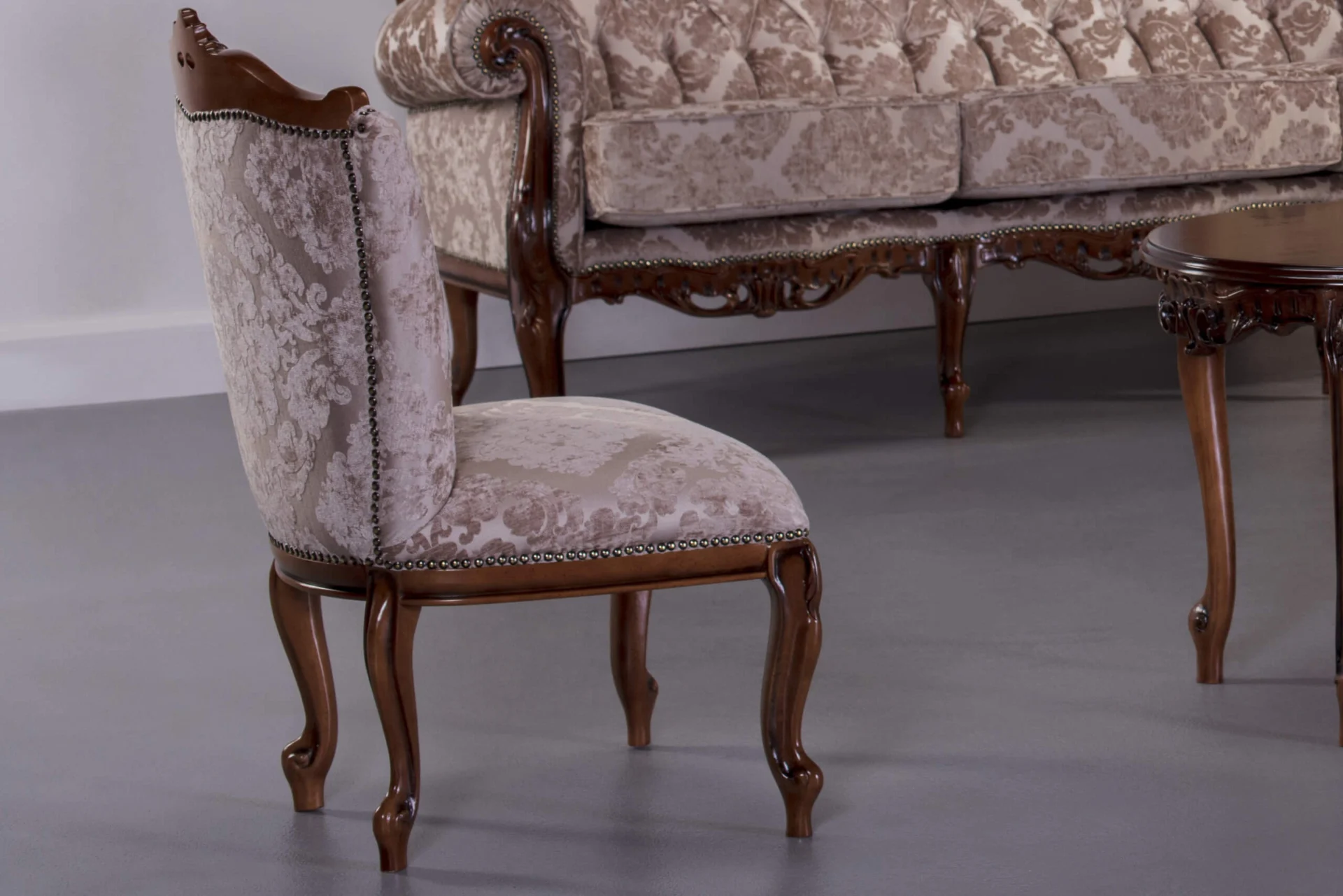 This armchair is especially brought to attention in stylishly decorated ambiences, where you can combine it with a sofa from the Victoria sets and create a harmonious whole of timeless beauty.
