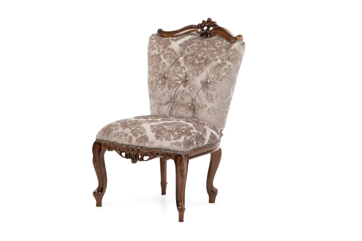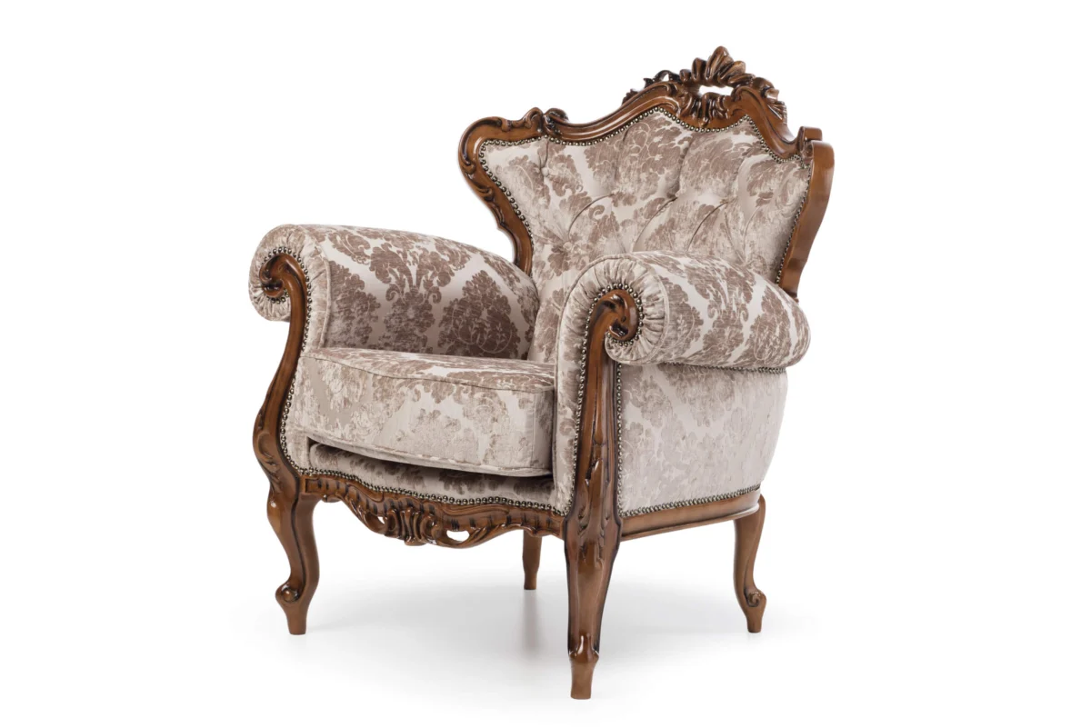 The Victoria armchair of timeless design was made to create a royal corner in your favorite space. This armchair impresses with details made of elegant decorative carved elements, decorative rivets and buttons in the backrest. You will be reluctant to separate from it because it will suit you in terms of appearance and comfort. It is the work of handcraft by our top craftsmen.