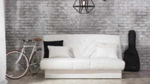 On this model, you will first be attracted by the comfortable seating area, unloaded with pages that take up extra space on other models. If you want to use it for sleeping, it has a simple mechanism by which it stretches and gets a space measuring 200 x 170 cm. The dimensions of the unfolded bed are a good recommendation for all partners who want to use this bed as a sleeping bed.
