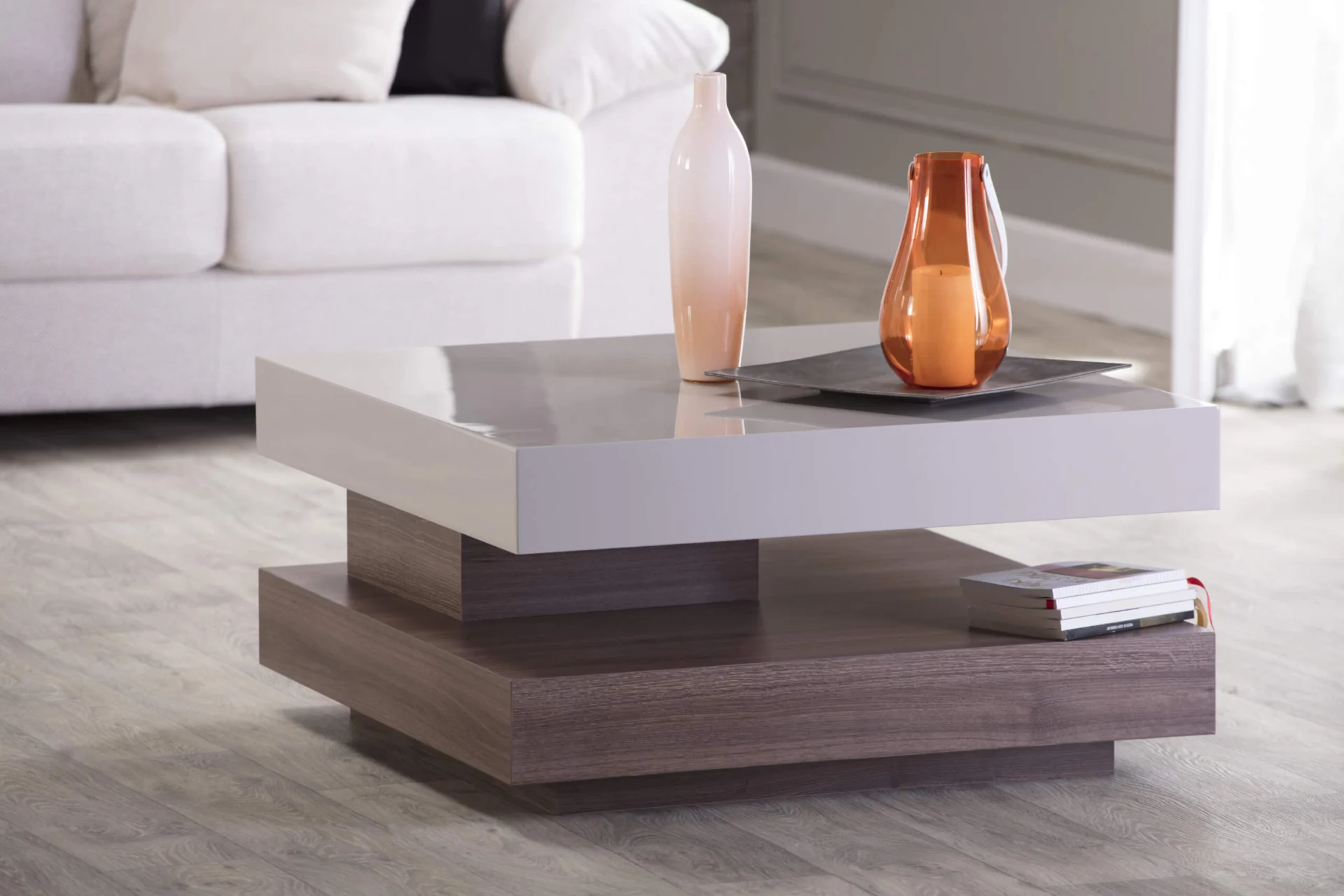 Twin club table in white is very elegant and ideal for minimalist interiors. A club table in a color that combines shades of dark oak sonoma and cappuccino will fit perfectly into a space where earth tones predominate.