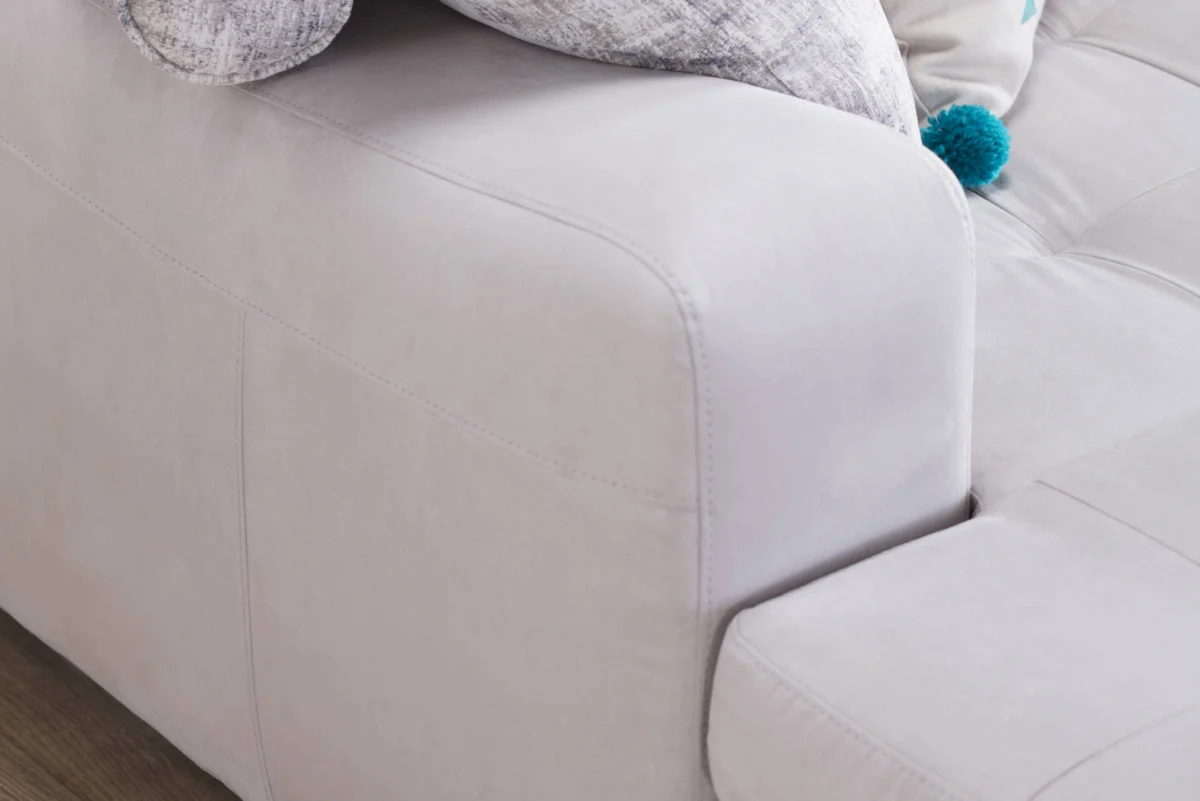 The Contessa corner set is as charming as its name. Slightly rounded armrests, decorative stitching on the seat cushions, decorative pillows and metal legs make it special. It is characterized by refined aesthetics accompanied by a balance of comfort and functionality.