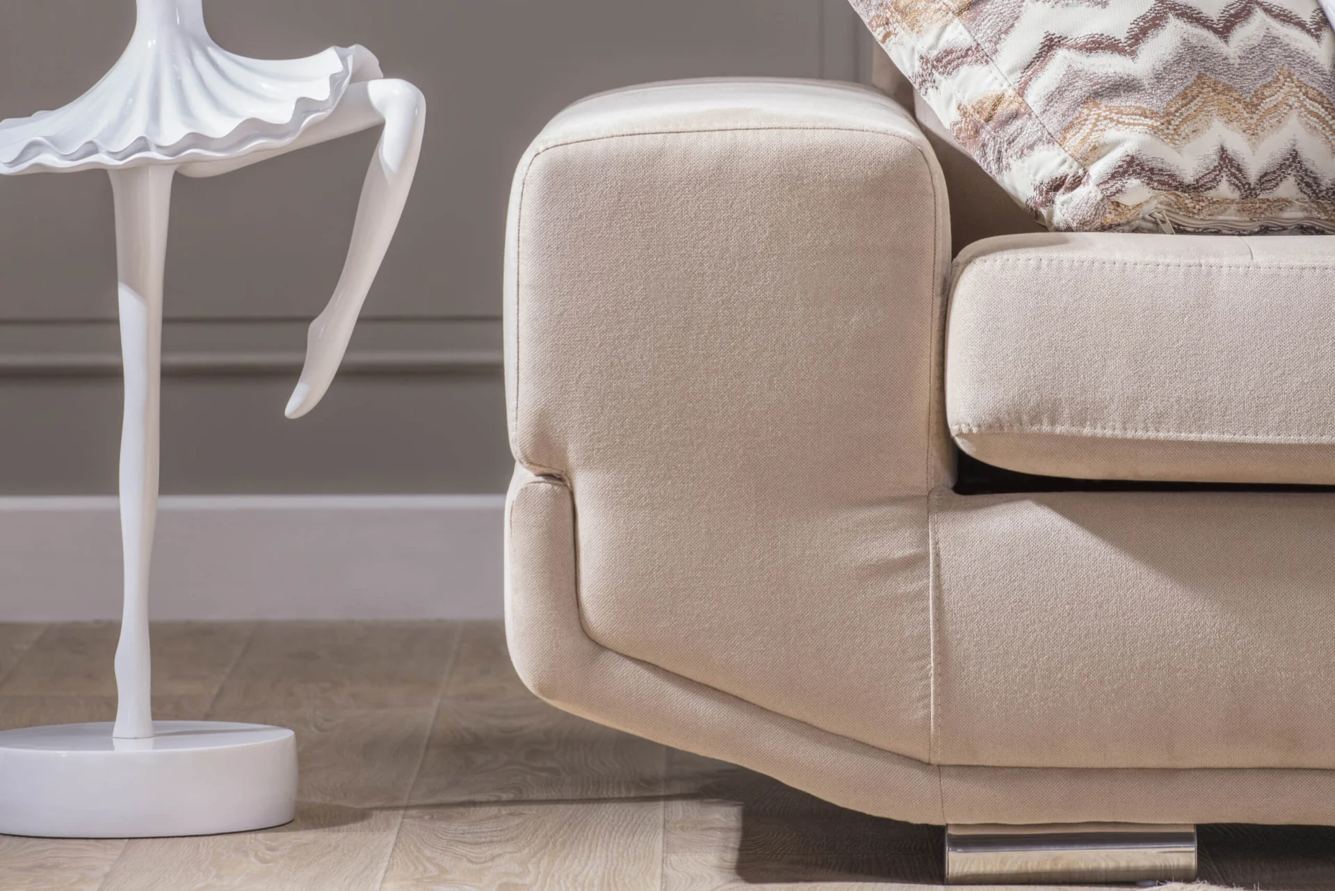 Esterel corner set with mechanism has a “sofa bed” pull-out mechanism that is very easy to use and does not require moving the pillow. By simply opening the mechanism, you get a sleeping space measuring 193×140 cm, with a polyurethane foam mattress 12 cm high.