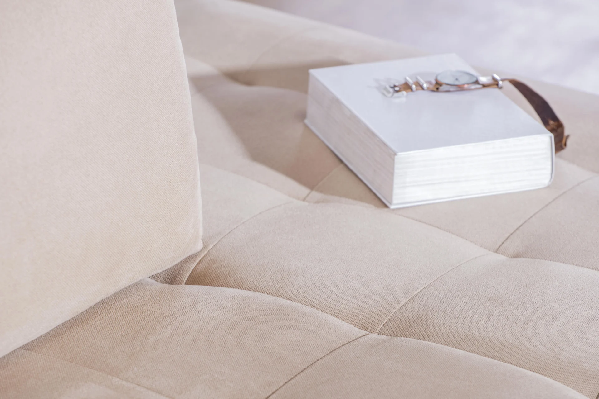 Combined with the Esterel footstool, made in the same style, you get a set that will enrich your living room. By choosing the angle, you have the additional option to perfectly adapt it to your space.
