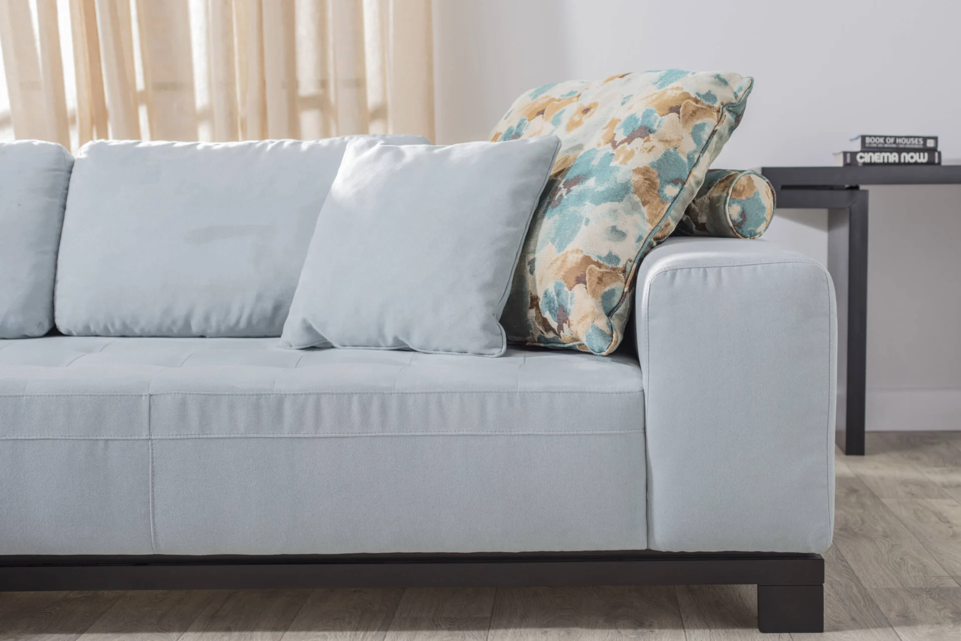 Pariska noć corner set will bring French charm to your interior. The modern model of straight lines, wide armrests, with a large number of pillows and elegant stitching is extremely beautiful and always modern. It is made to suit your daily comfort.