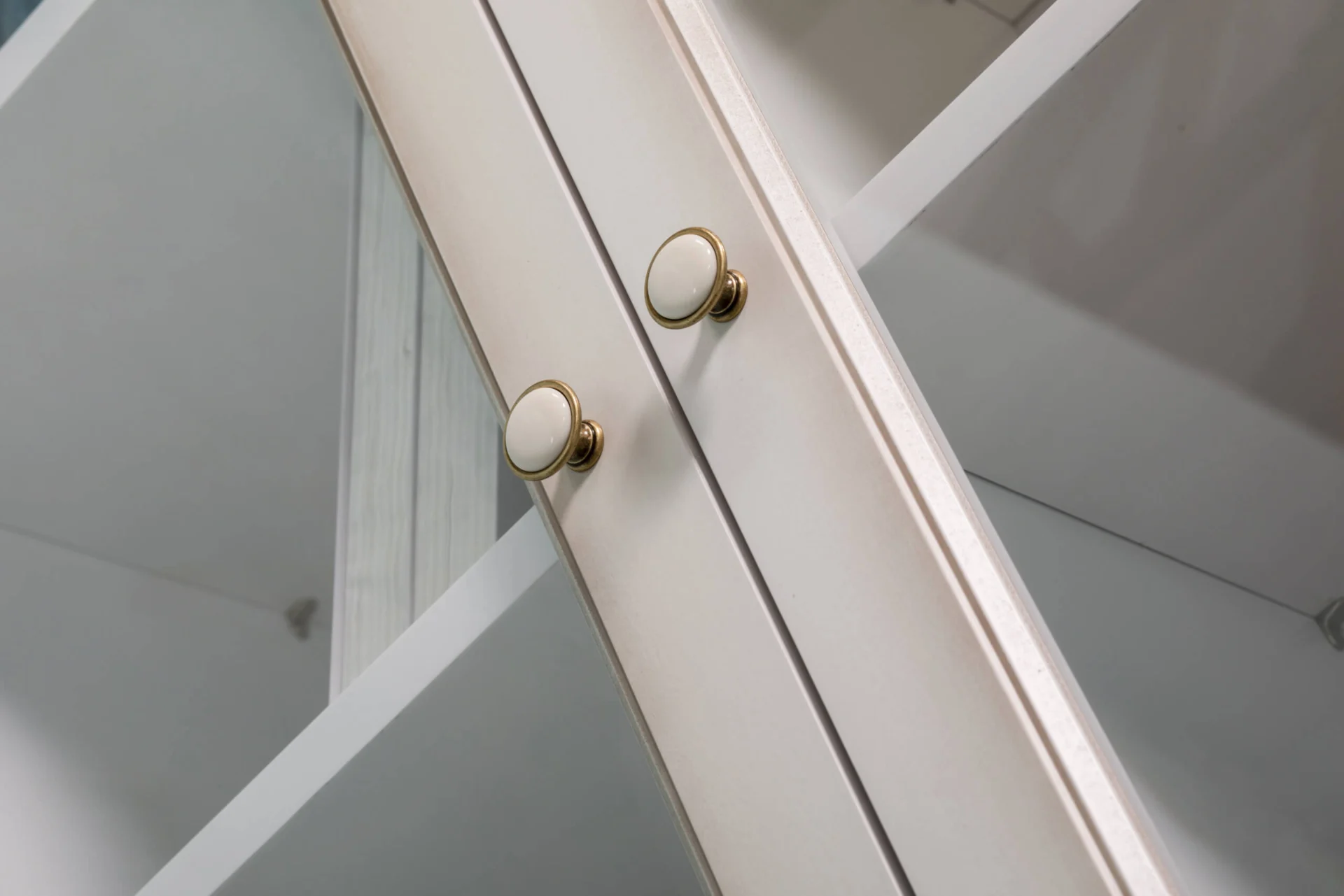 The Victoria display cabinet brings romance to your space and awakens a special emotion. On the shelves, behind the glass door, display your favorite decorative items, family photos in elegant frames, awards and other items that have great sentimental value for you. It will faithfully preserve your precious memories and protect them from dust and damage.