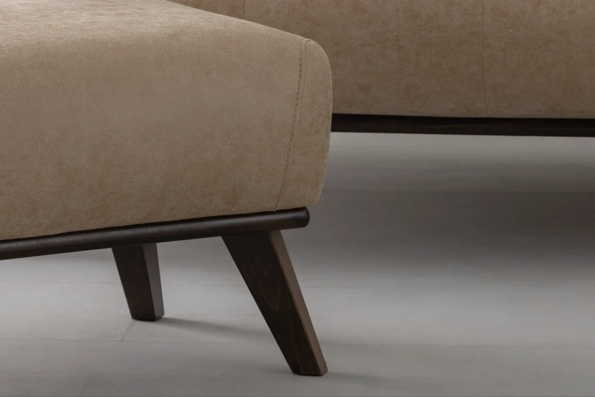 Kairo footstool is a model with a solid construction made of beech sawn timber, chipboard, plywood, MDF and hardboard. The seat is made of HR foam, with an elastic strap at the base. The wooden frame with legs is made of beech wood. In addition to being very comfortable, this footstool is also light and you can position it where it suits you at any time