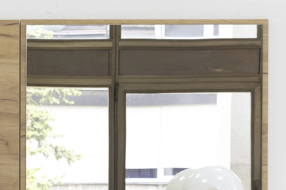 The Luna mirror is produced in two dimensions. It is available in rectangular and square form. The Luna mirror holder is the MFC in a golden oak design, with edges in the same design. The simple concept of the mirror with a frame offers the possibility of easy integration into various decoration concepts.