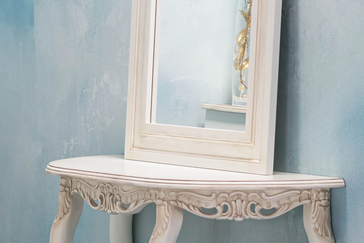 If you place the Viktorija mirror above the Viktorija console table in your hallway, you will get a real little artistic corner. In the living room together with dressers or a display cabinet, this mirror will create the effect of a spacious living room with luxurious stylistic furniture. In the dining room opposite the dining table, it will give a romantic glow during dinner and create a special atmosphere.