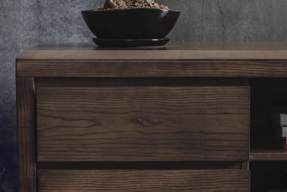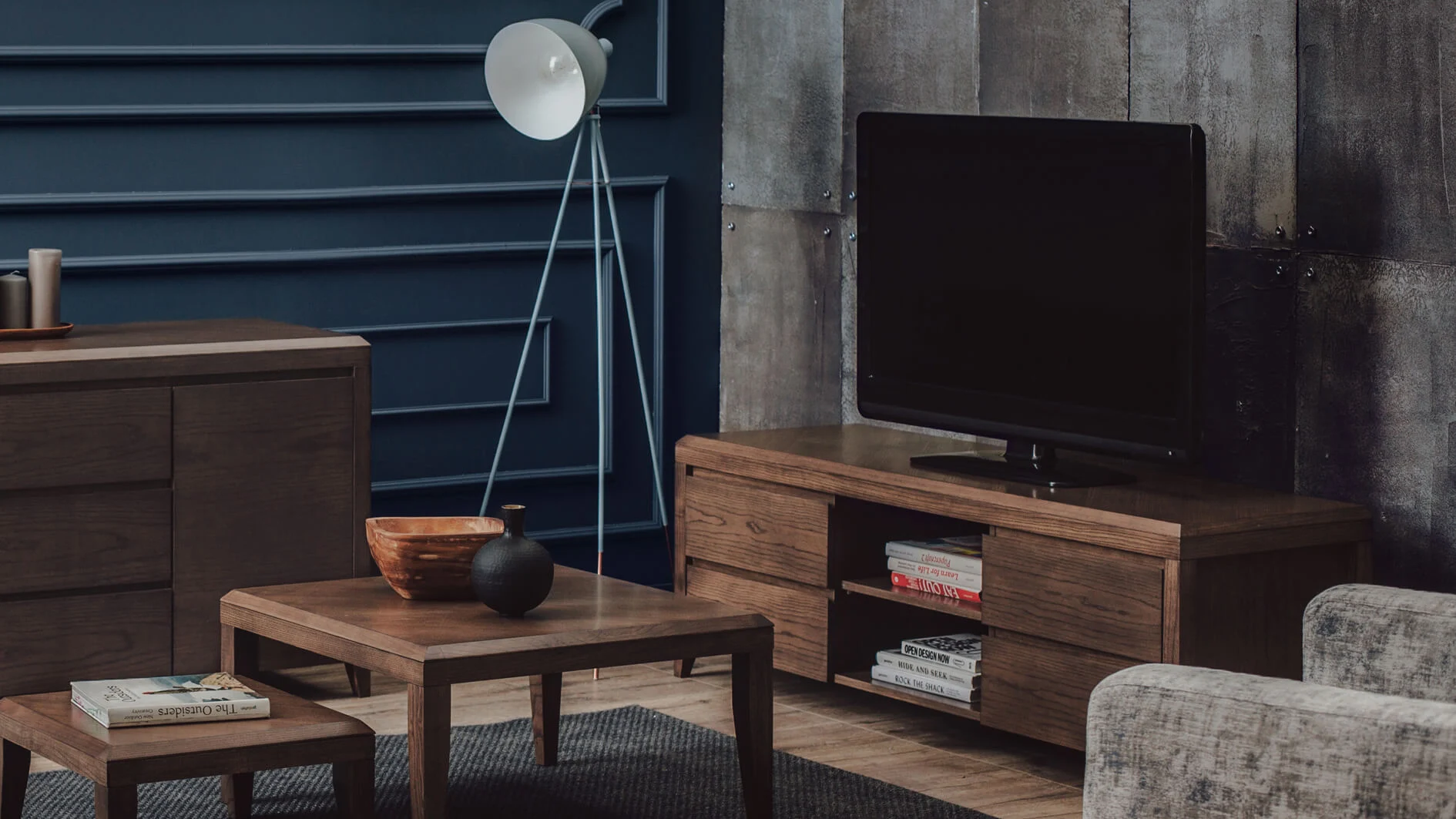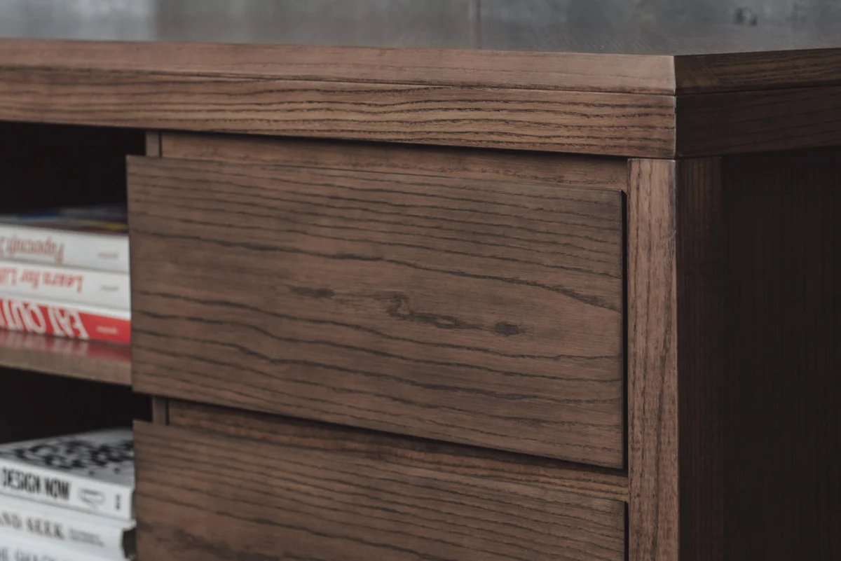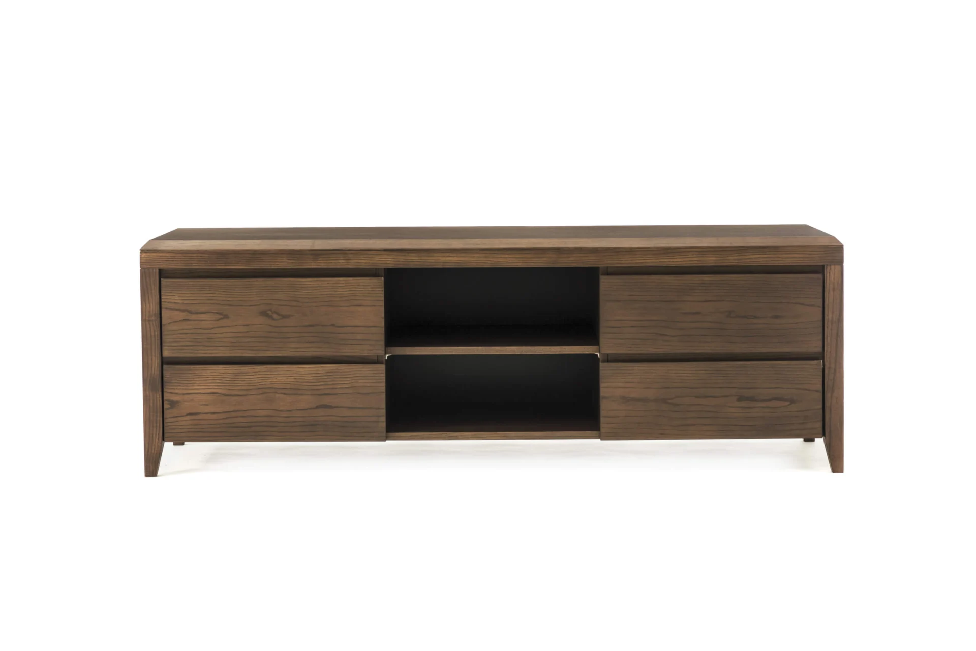 Chipboard enriched with ash veneer is used to make the Safira TV stand. Edge moldings made of solid ash have been added to the TV stand plank top. The legs are also made of solid ash.