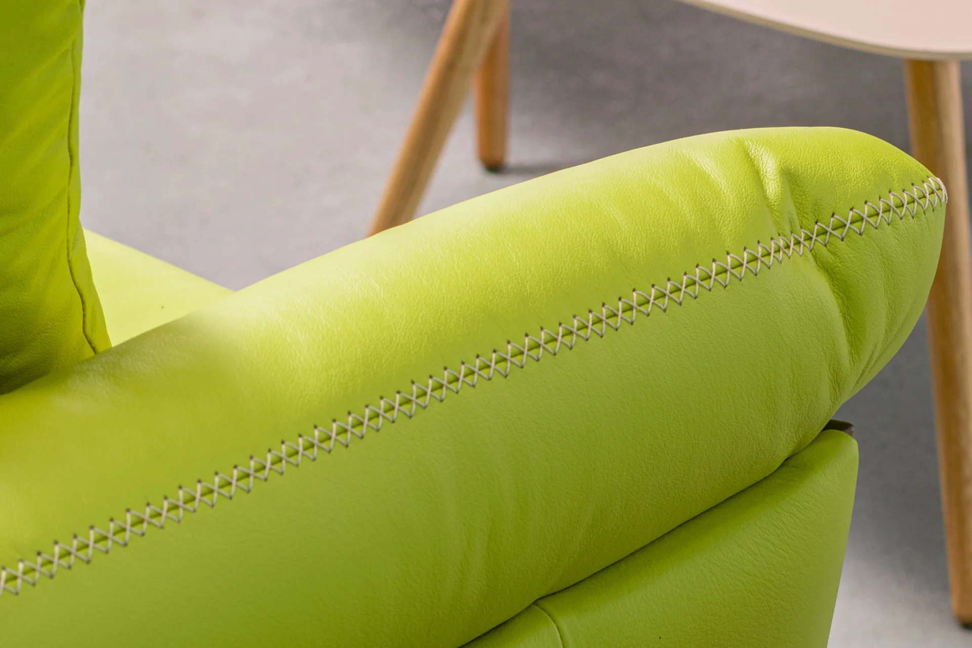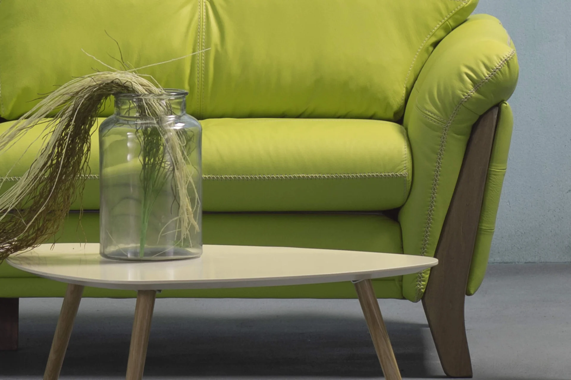 The Apolon two-seater construction is made of beech sawn timber, chipboard, hardboard and plywood. In addition to the standard polyurethane foams in the interior of the model, the seat cushion is filled with highly elastic HR foam, which contributes to its special comfort. The legs that are integrated with the armrest are made of solid wood.