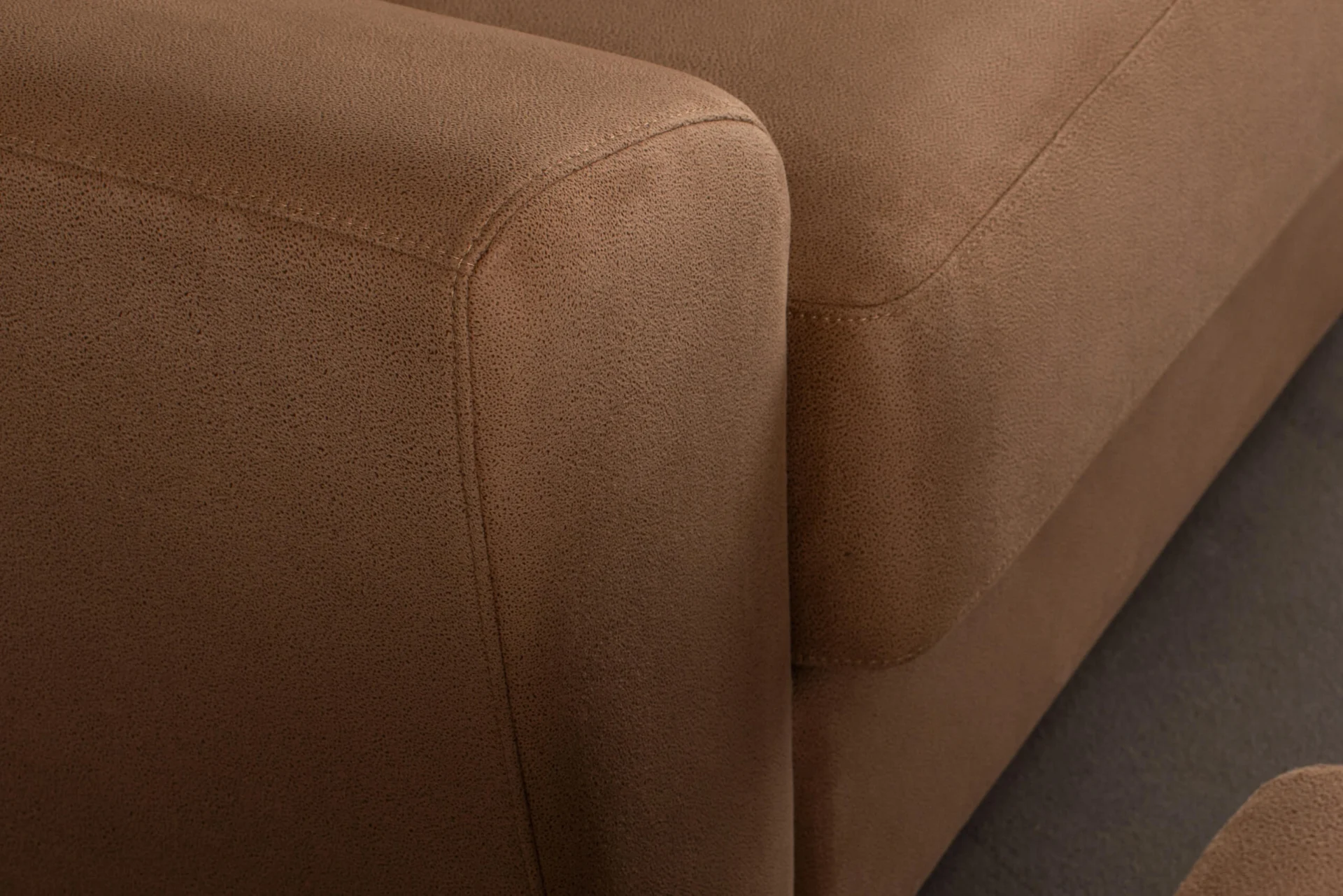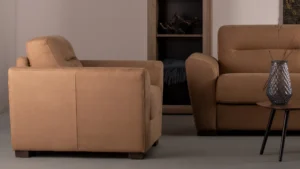 It has a delicate shape and soft pillows. The backrests with elegant stitching and exceptional filling provide a perfect support while sitting. The armrests with mild curves will be a good support when you rest. This model is fixed.