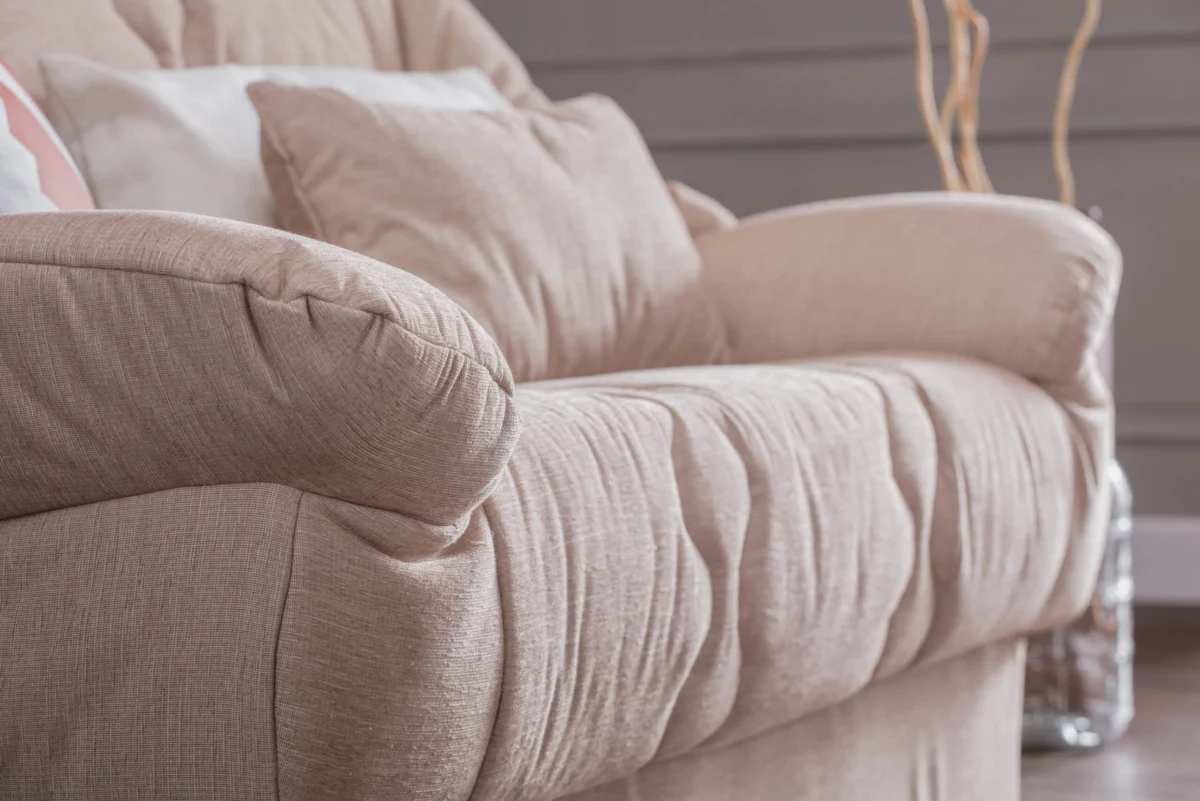 The Nevena two-seater structure is made of beech sawn timber, chipboard and plywood. The interior is filled with standard polyurethane foam. The cover is made of fabric that you choose from our current range of materials.