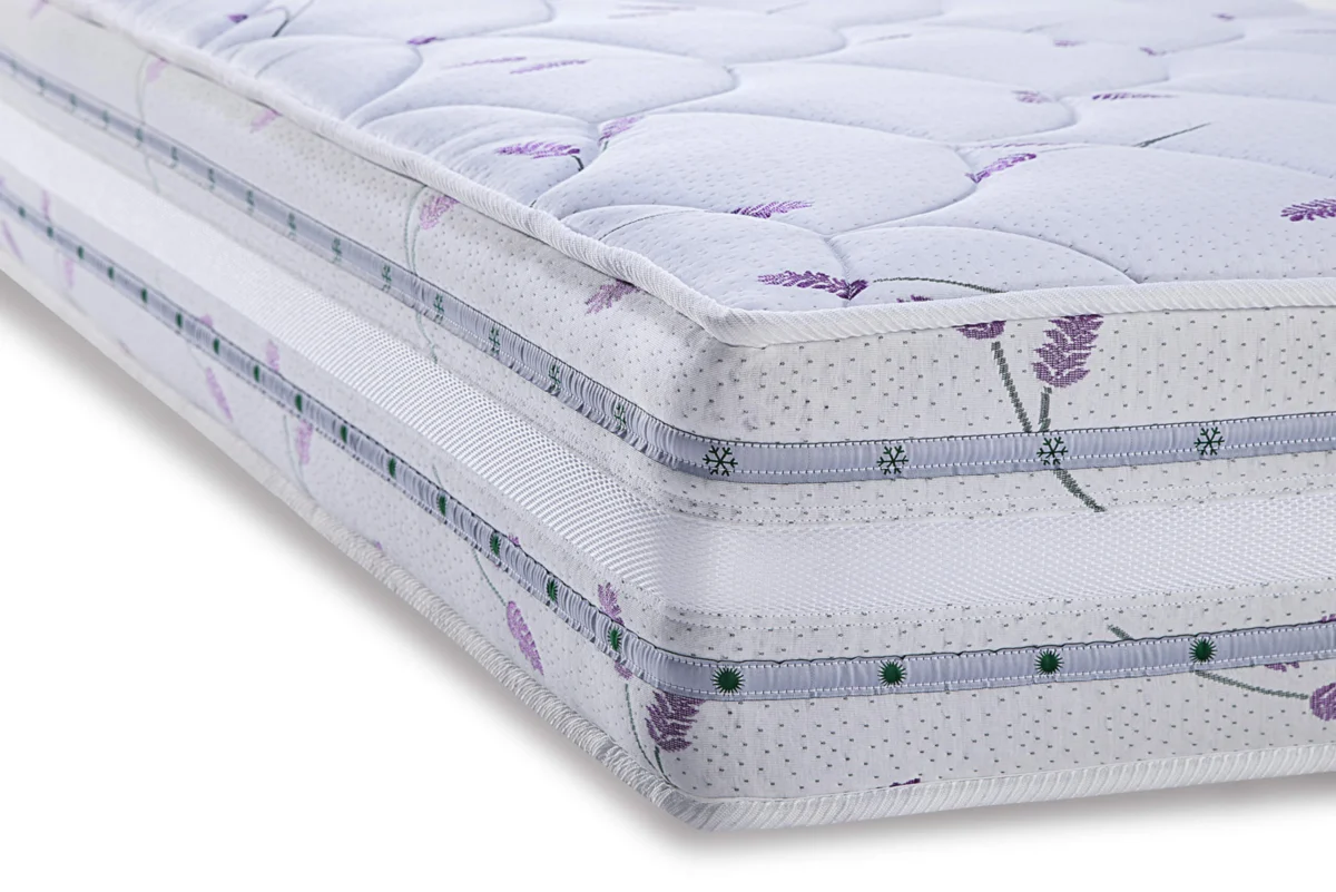 In order to provide real benefits of comfort and luxury intended for the refined taste of the most demanding customers, the Viola mattress is designed to be an ideal combination of technology and natural materials. By using high-quality natural materials and pressing coconut fibers that bind moisture from the upper layers of the mattress, the healthiest possible sleeping environment is provided. A layer of memory foam improves circulation and provides maximum relaxation of the body. The summer mattress side, and especially the winter side, enriched with wool as a natural insulator, satisfies all the individual needs and habits of the users. The story of supreme comfort is encircled with a gentle and pleasant final fabric with lavender essence, which calms down, relaxes and removes the feeling of tension.