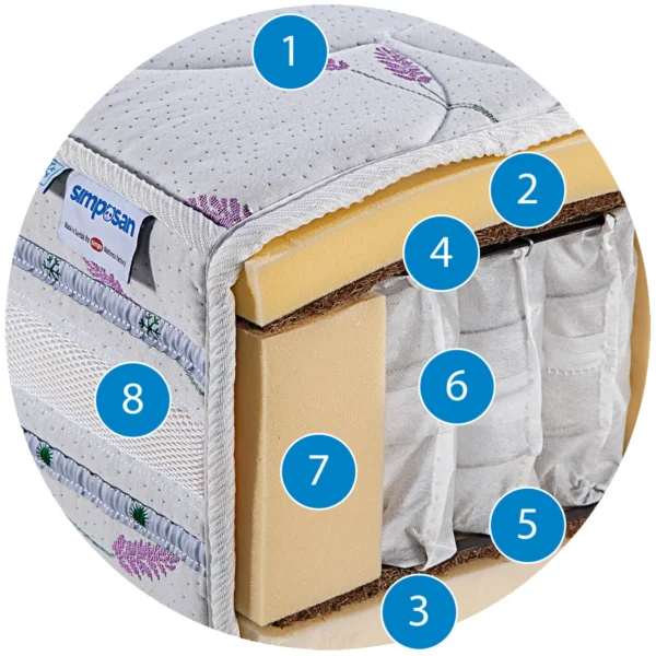 – a unique combination of pocket springs, coconut fiber, PU and memory foam