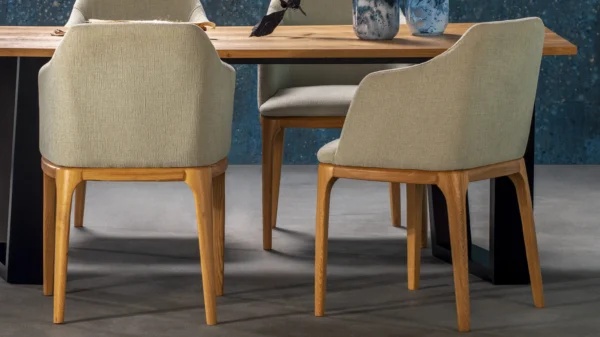 Your ambience will be embellished by dining tables with a rectangular or circular plank top, made in different dimensions, some of which have the possibility of extending. A feeling of comfort will be provided by dining chairs in fabric or leather, with or without armrests. Use the space in your dressers for practical storage of dishes, tablecloths and various dining sets, while you can present all the items you are proud of in the display cabinets.
