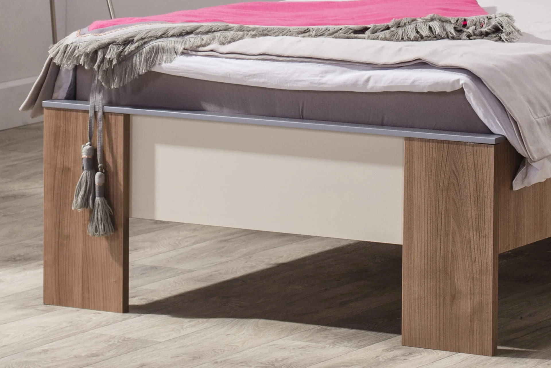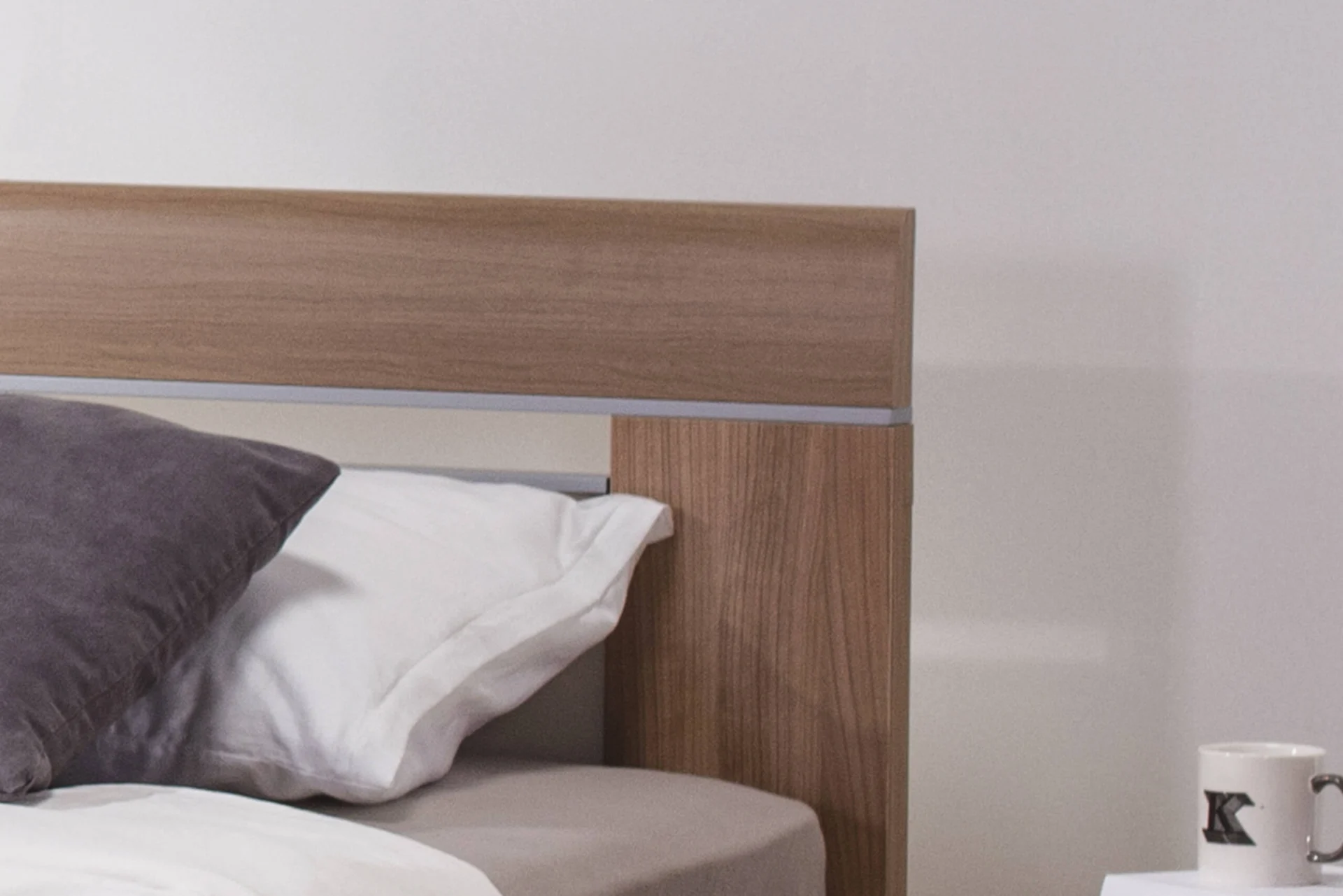 Keln krevet napravljen je od oplemenjene iverice, sa uzglavljem koje ima dodatak od profilisanog medijapana u dekorativnoj foliji. Elegantne ukrasne lajsne, kao poseban detalj na krevetu napravljene su od medijapana, za završnom obradom u srebrnoj boji. Visina uzglavlja je 85 cm.