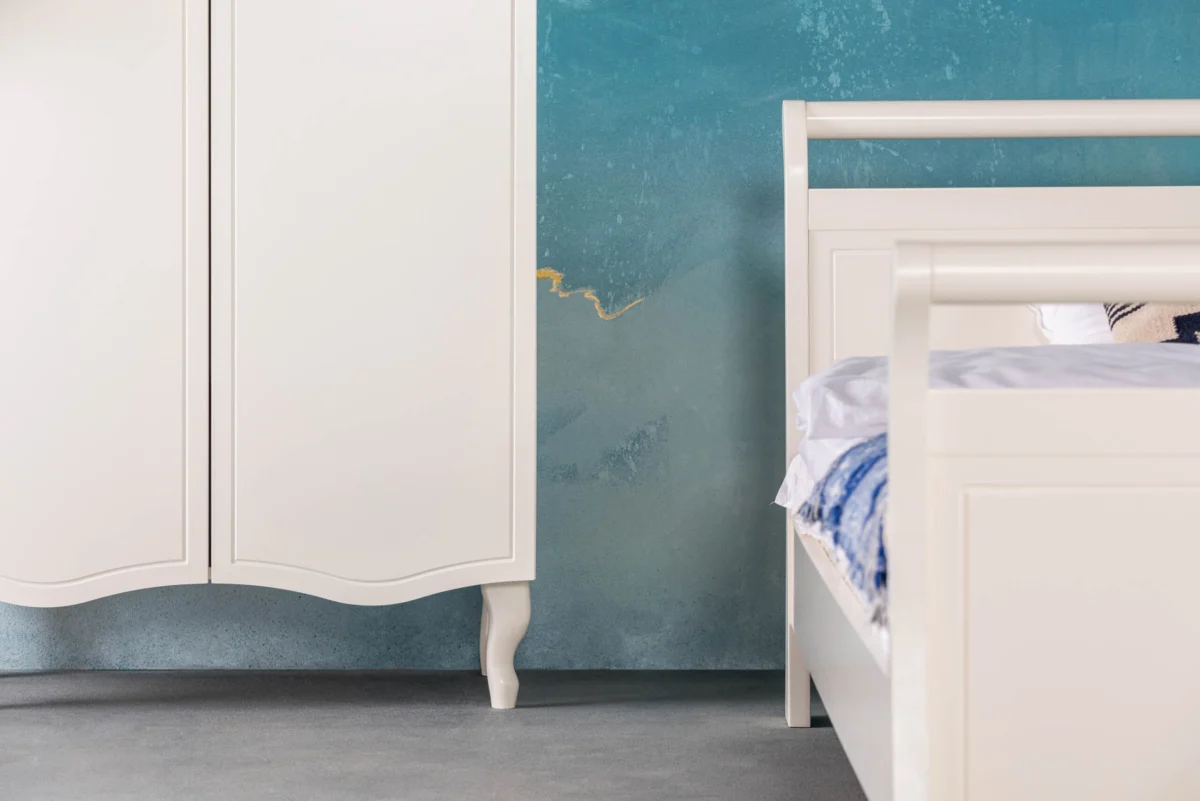 Glorija ormar izrađen u boji slonove kosti, izuzetno je stabilan i dugotrajan model, sa neobičnim dizajnom nogica.