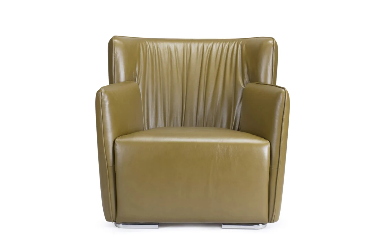 Materijal za finalnu izradu Elena fotelje određuje i vrstu nogica. Za fotelju u koži ugrađuju se elegantne metalne noge. Fotelja u štofu oslanja se na noge od punog drveta.