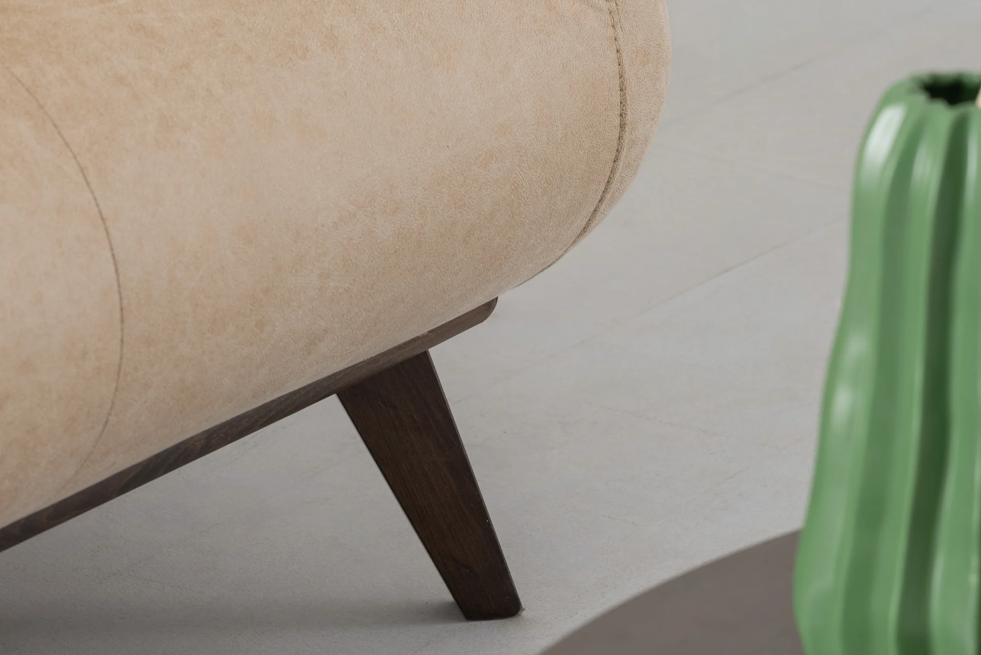 Kairo trosed napravljen je od kvalitetnih materijala koji mu daju trajnost i stabilnost. Drvena konstrukcija izrađena je od bukove rezane građe, iverice, šper ploče, medijapana i lesonita. Kombinacija prostranih i moderno dizajniranih sedišta koja u osnovi imaju elastičnu gurtnu i ispunu od HR pene sa naslonom od meke PU pene, vašem telu pružiće savršenu potporu. Ležerni retro stil upotpunjen je drvenim ramom i nogama izrađenim od visokokvalitetnog bukovog drveta.