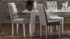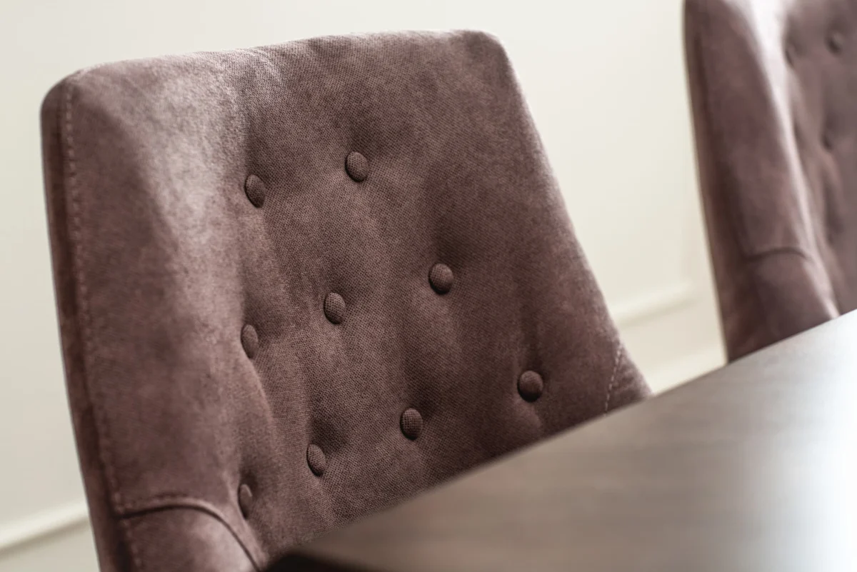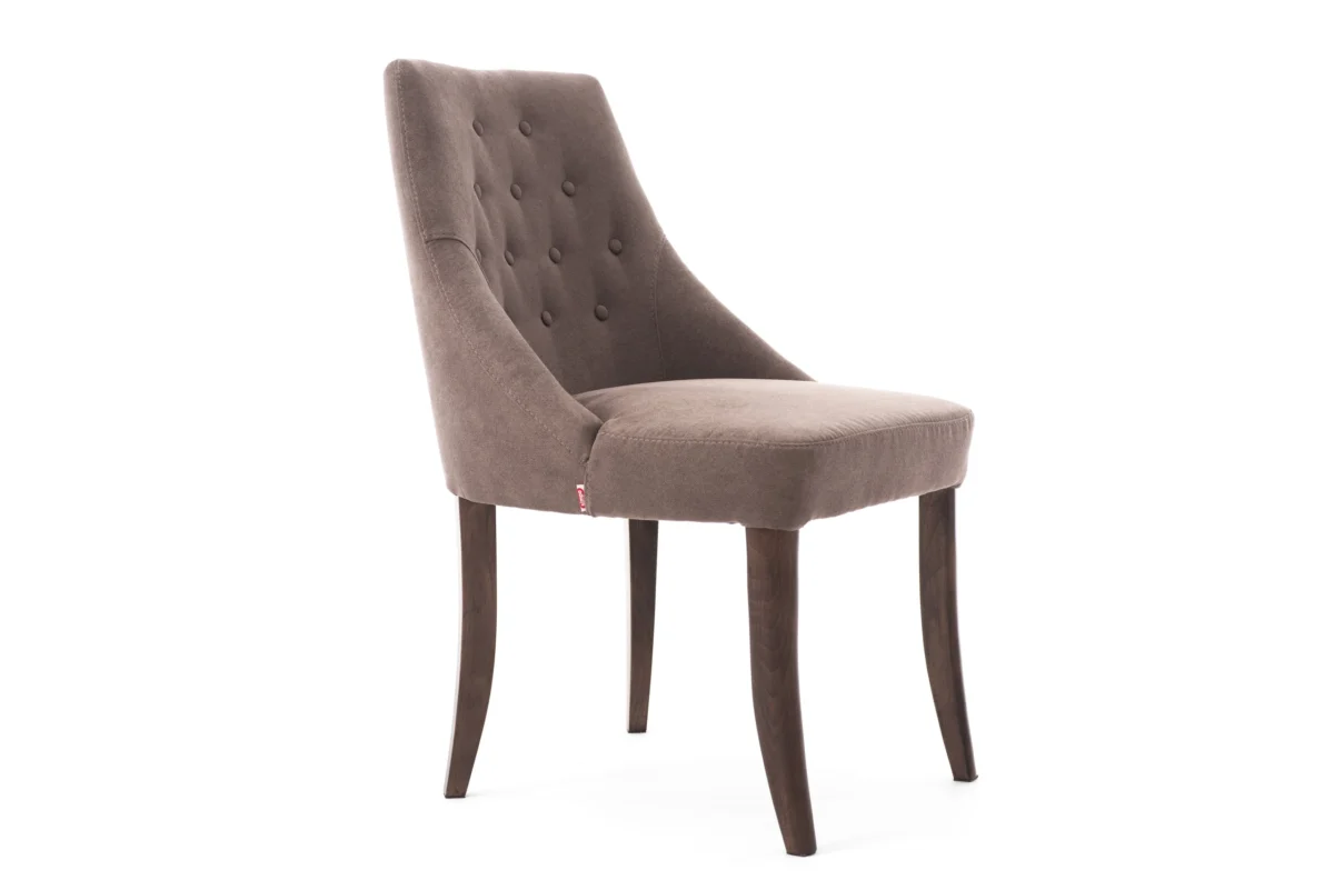 Bea trpezarijska stolica pleni dizajnom i kvalitetom. Konstrukcija je napravljena od bukove rezane građe i šper ploče. Tapacirani naslon ergonomski je dizajniran i sa unutrašnje strane ukrašen dekorativnim dugmadima. U kombinaciji sa minimalističkim rukonaslonom sjajna je potpora za leđa i oslonac za ruke.